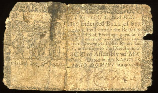 Scarce 1776 note issued Annapolis; VG condition: KRAUSE 2005 $60