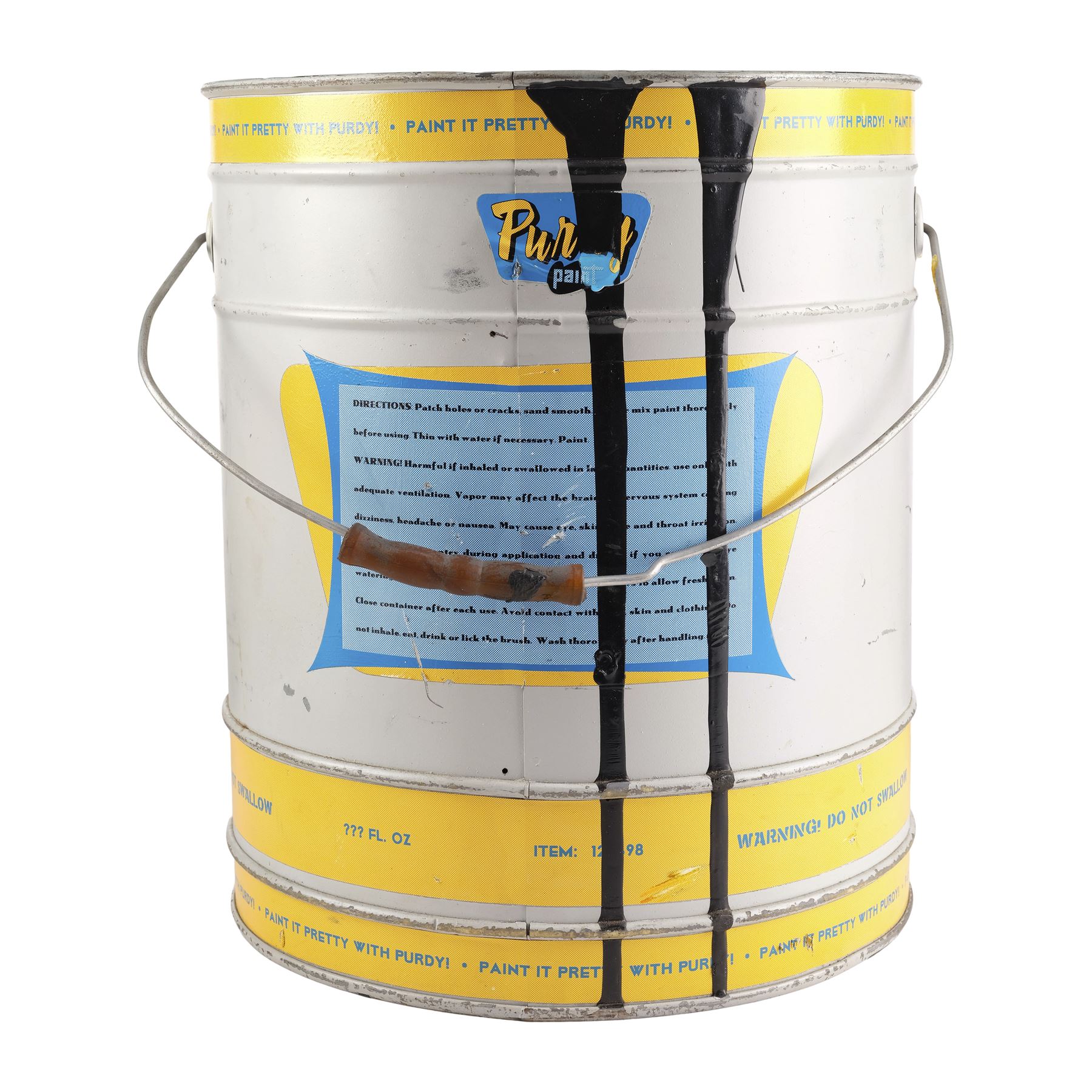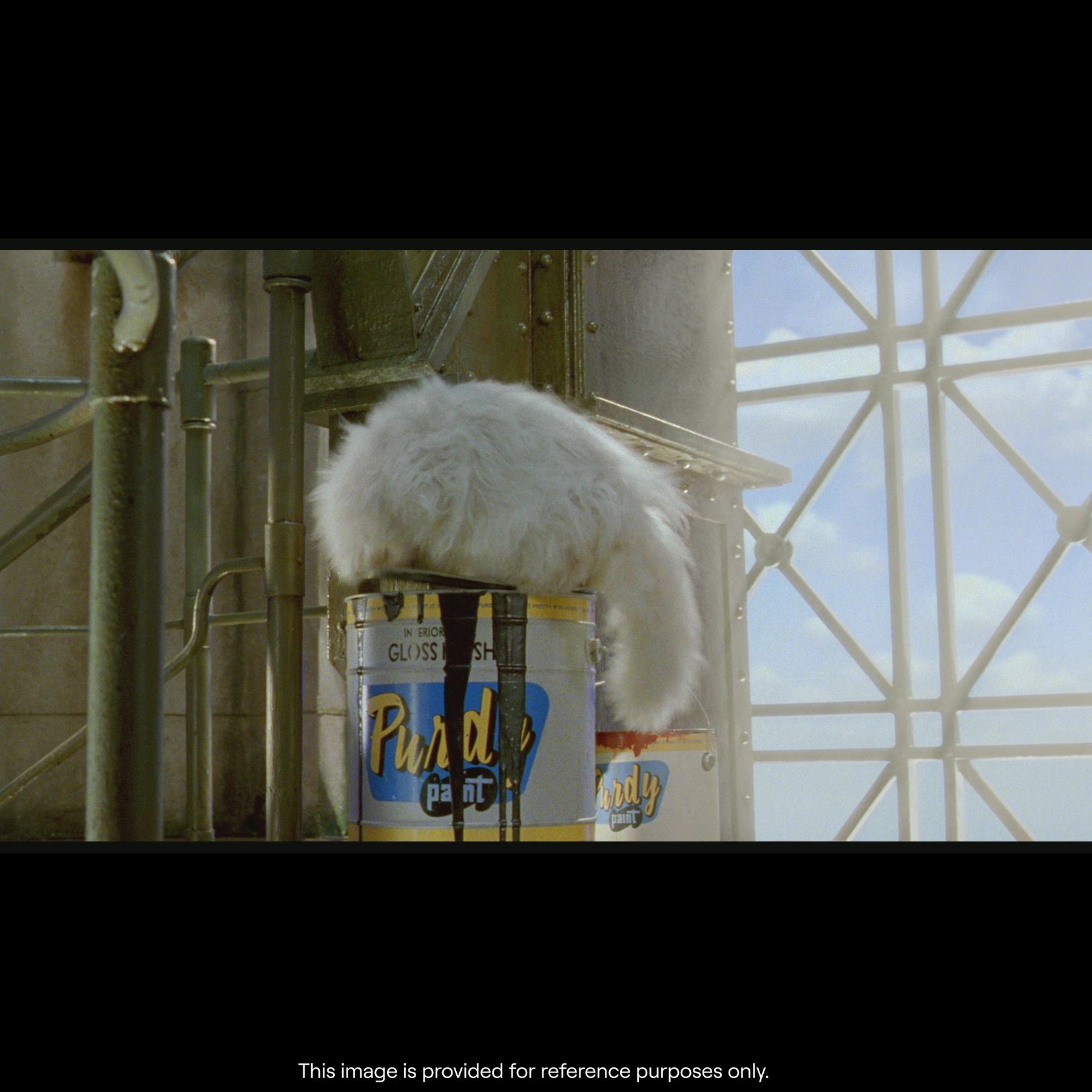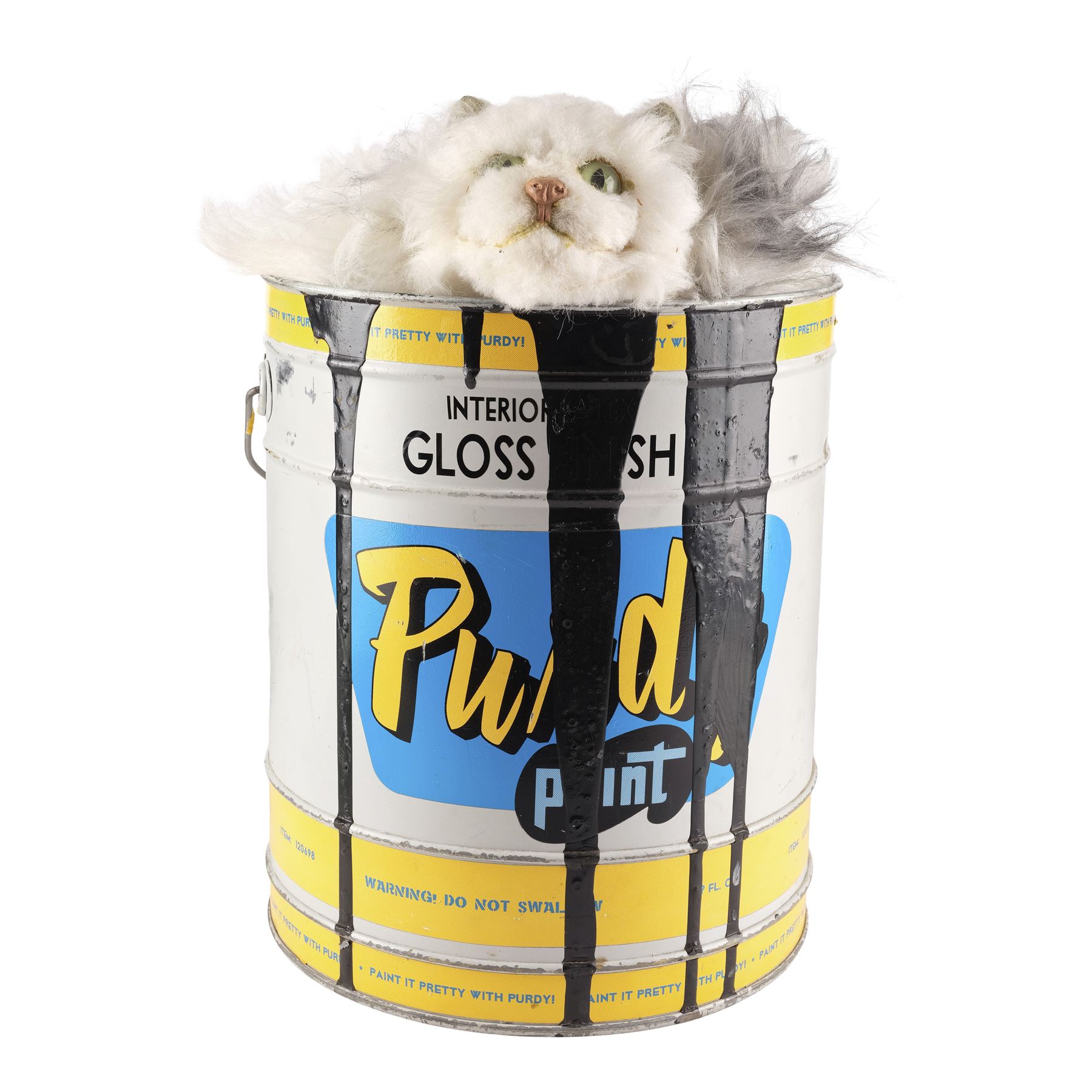 STUART LITTLE 2 (2002) - Animatronic Bucket with Cat Puppet Components - An animatronic bucket with cat puppet components from Rob Minkoff's Stuart Little 2. Snowbell (Nathan Lane) hid in a paint can from Falcon (James Woods) who almost knocked the can off the top of a building. Snowbell attempted to walk away from the edge and ended up falling over the side.