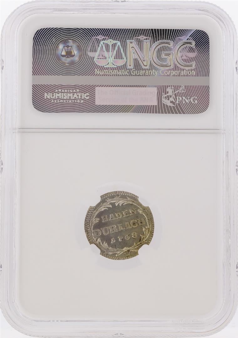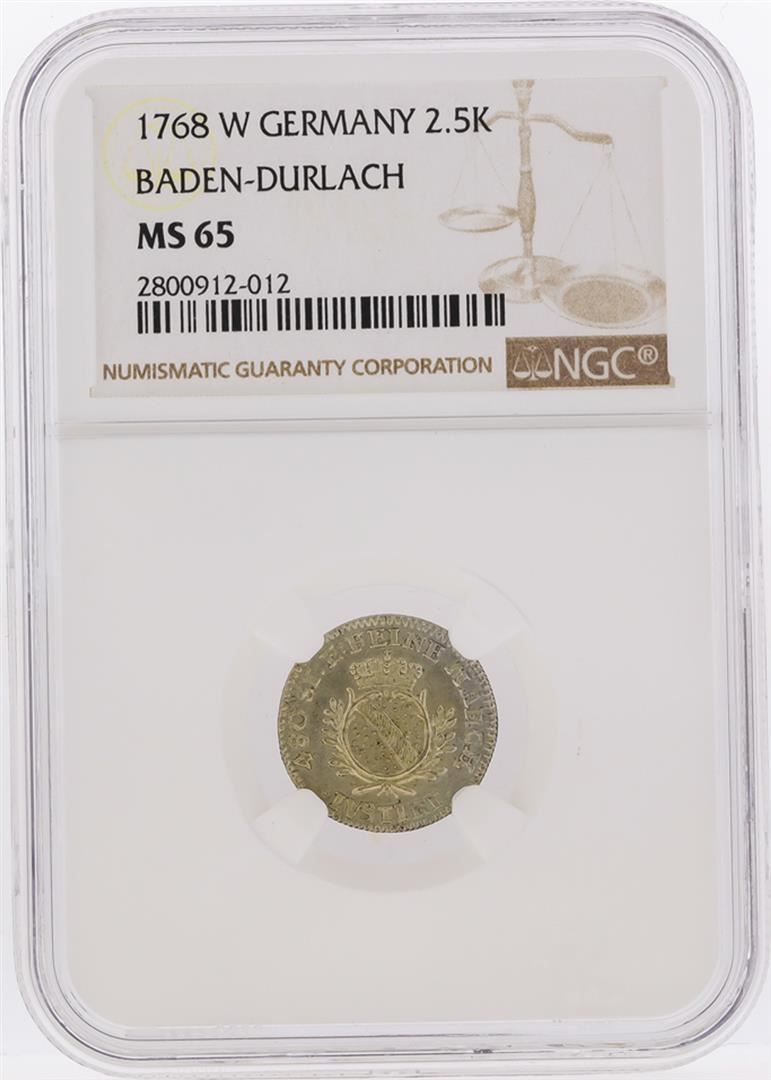 One 1768-W Germany Baden-Durlach 2.5K Silver Coin NGC Graded MS65. NGC Certified.