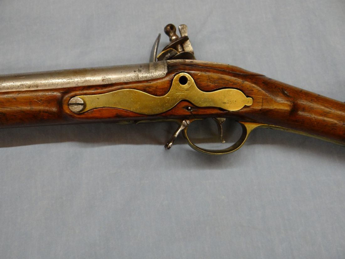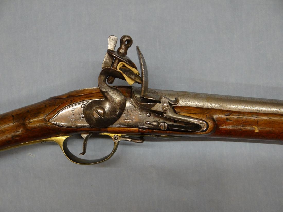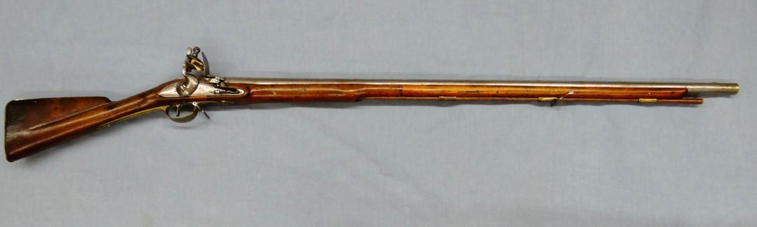 1769 Brown Bess Musket, Short Land pattern, 18th Century walnut stock, lock plate marked Tower w/Crown over GR, barrel has proof marks, correct stock cartouche, gun appears to be not complete.