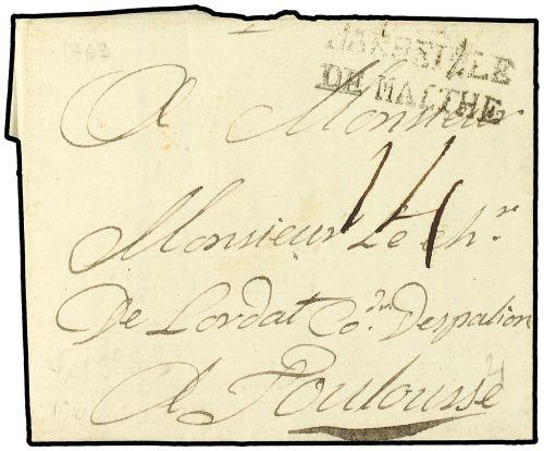 1769 Pre stamp envelope written from the KNIGHTS OF ST. JOHN, Malta addressed to De Lordat at Toulouse with manuscript "14" and hand-struck MARSEILLE/DE MALTHE. Very fine.