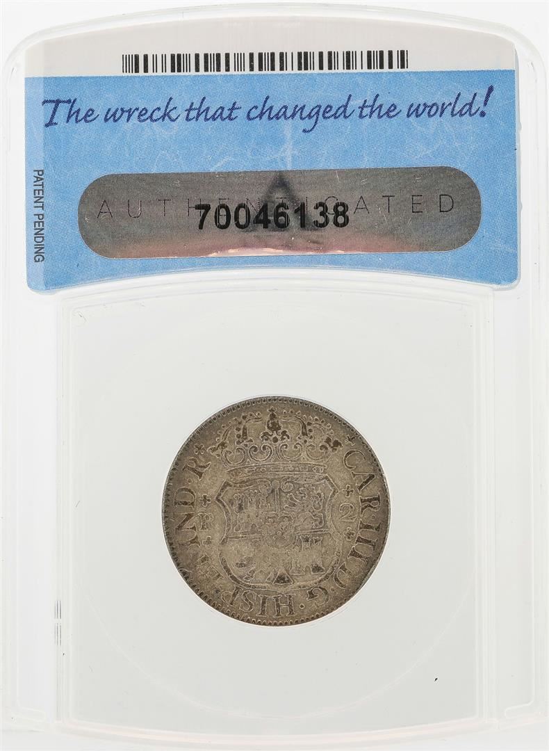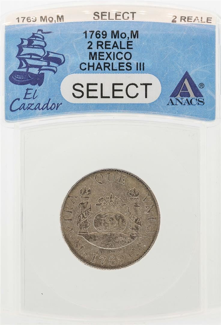 One 1769MoM Mexico 2 Reales Charles III El Cazador Shipwreck Coin ANACS Select. ANACS Certified.