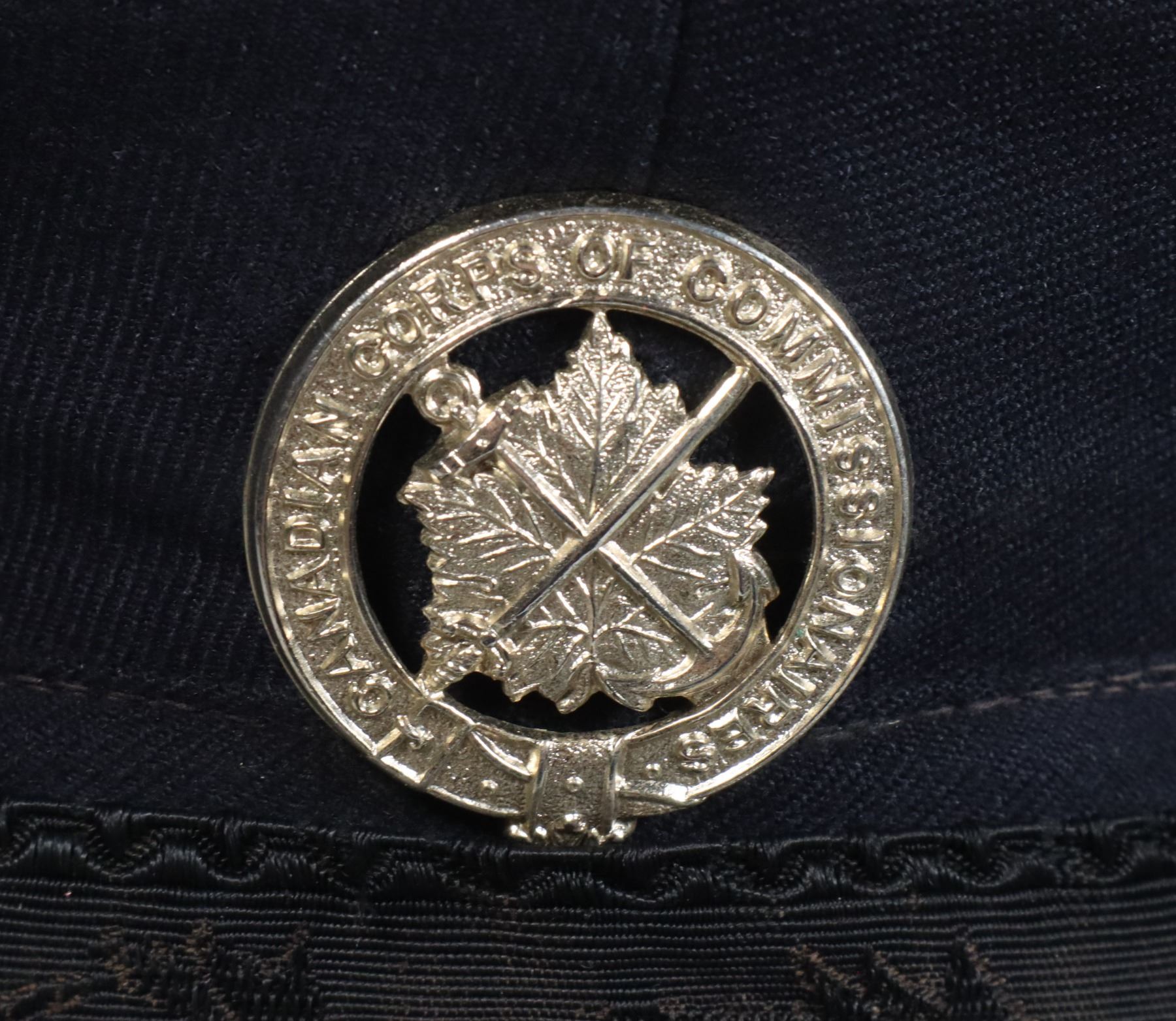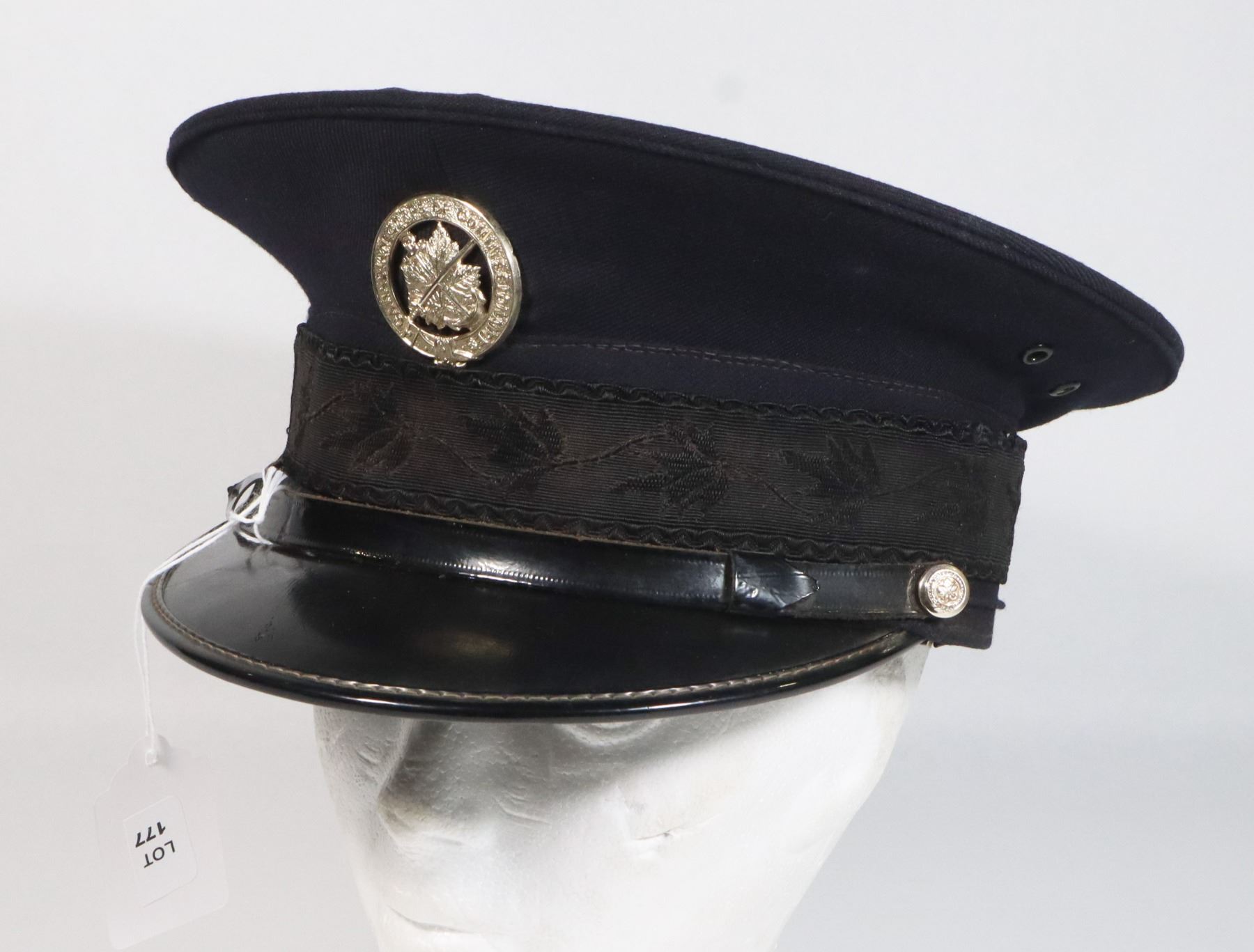 W/ BLACK CANADIAN HAT BAND + CAP BADGE MUIR CAP & REGALIA LTD TORONTO CANADA MARKED