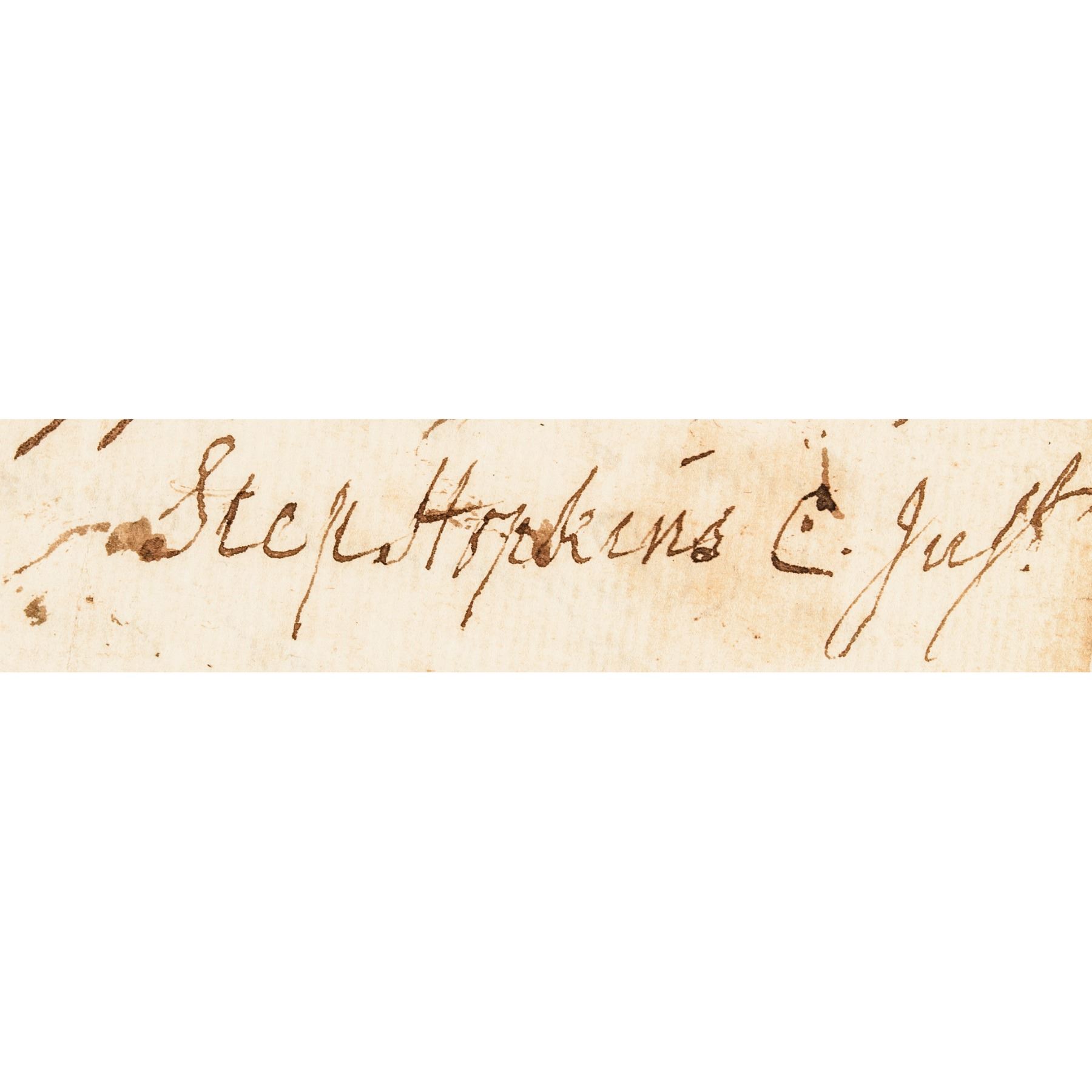 STEPHEN HOPKINS (1707-1785). Signer of the Declaration of Independence for Rhode Island; Member of 1st Continental Congress; (Four-Time) 4 x Governor of Rhode Island; Author of the First Anti-Slavery Law in the United States; Chief Justice of the Rhode Island Supreme Court; 1st Chancellor of Brown University; Speaker of the Rhode Island General Assembly.