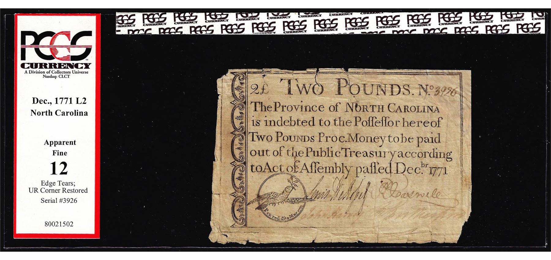 1771 North Carolina 2 Pounds Colonial Currency Note PCGS Fine 12 Apparent