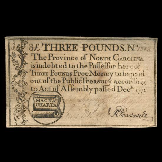 Rare US NC colonial issue; AU/XF condition; KRAUSE 2005 $500+