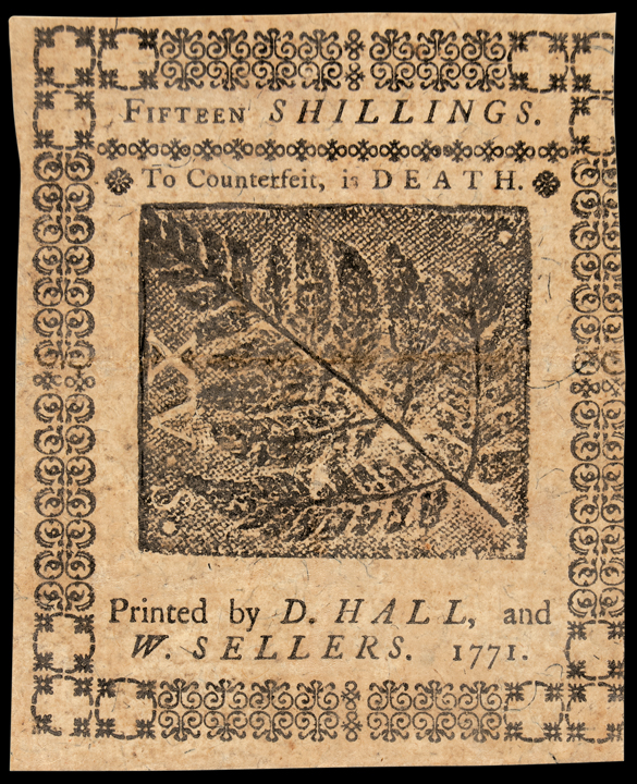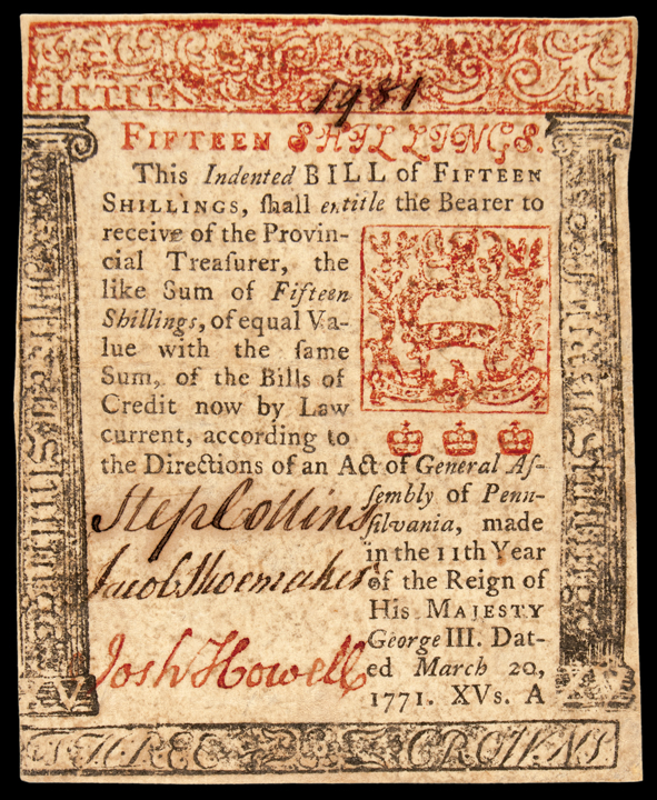 Pennsylvania. March 20, 1771. Fifteen Shillings. Plate A. Choice Crisp EF to About Uncirculated.