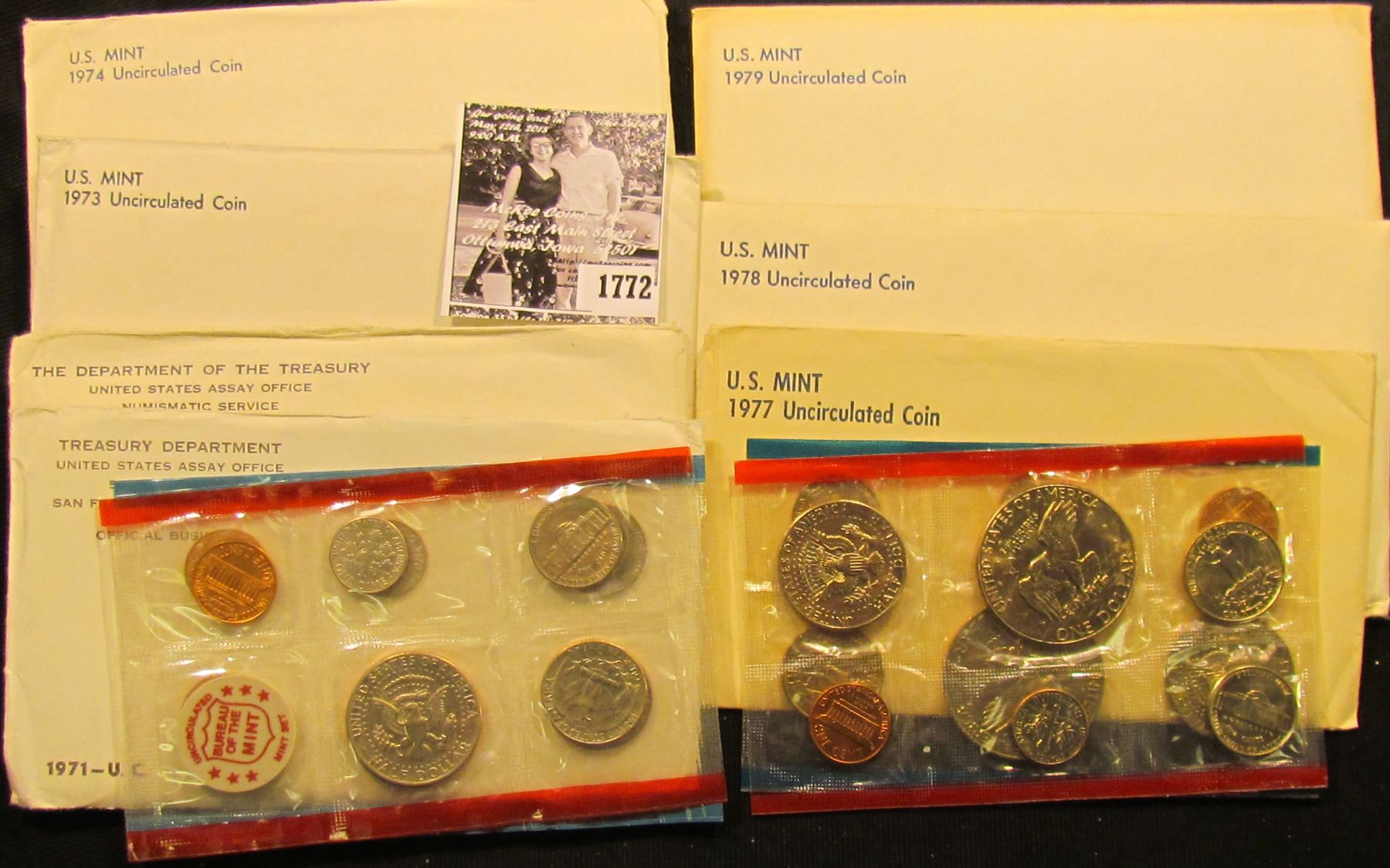 1772 . 1971, 72, 73, 74, 77, 78, & 79 U.S. Mint Sets. All original as issued. (total face value $22.77)