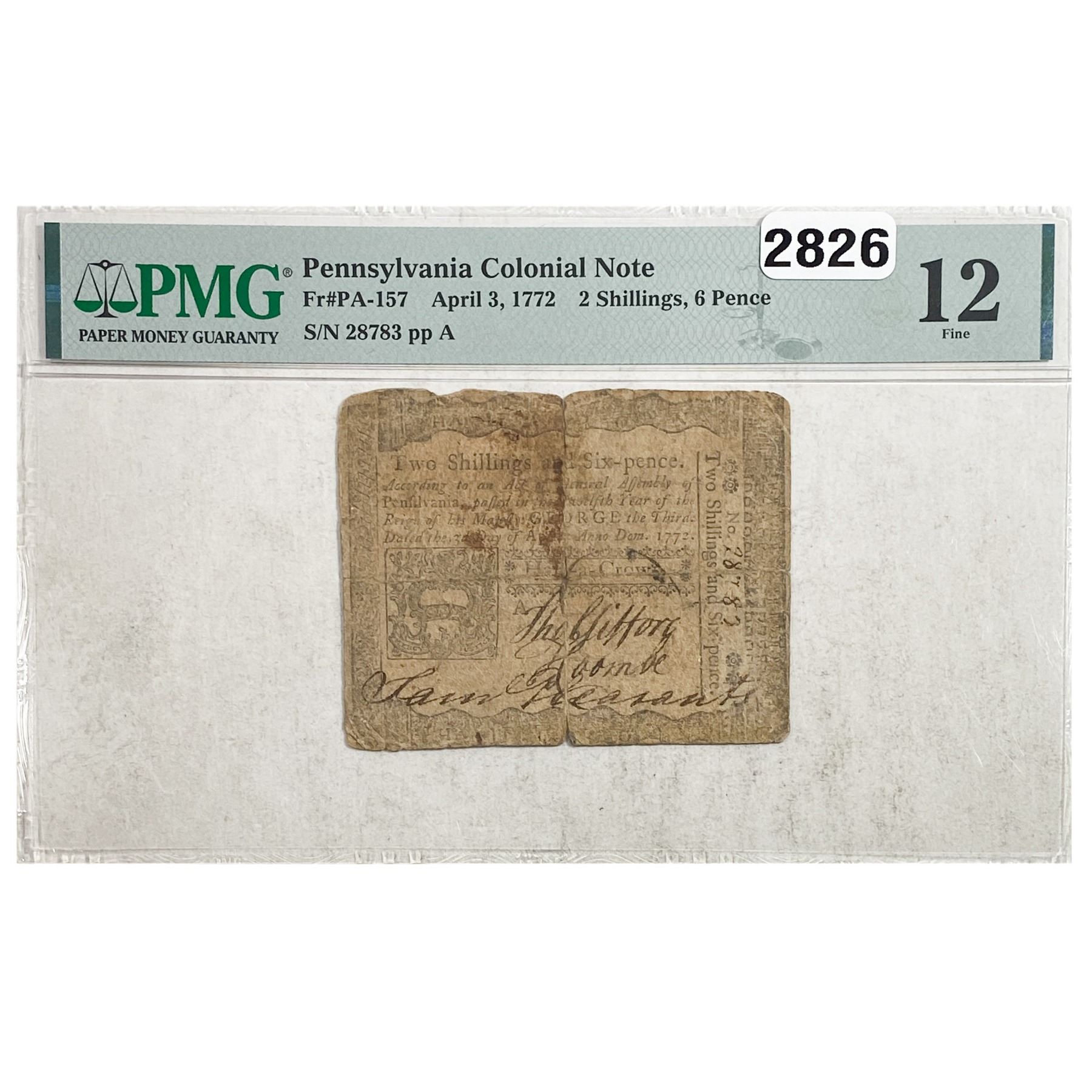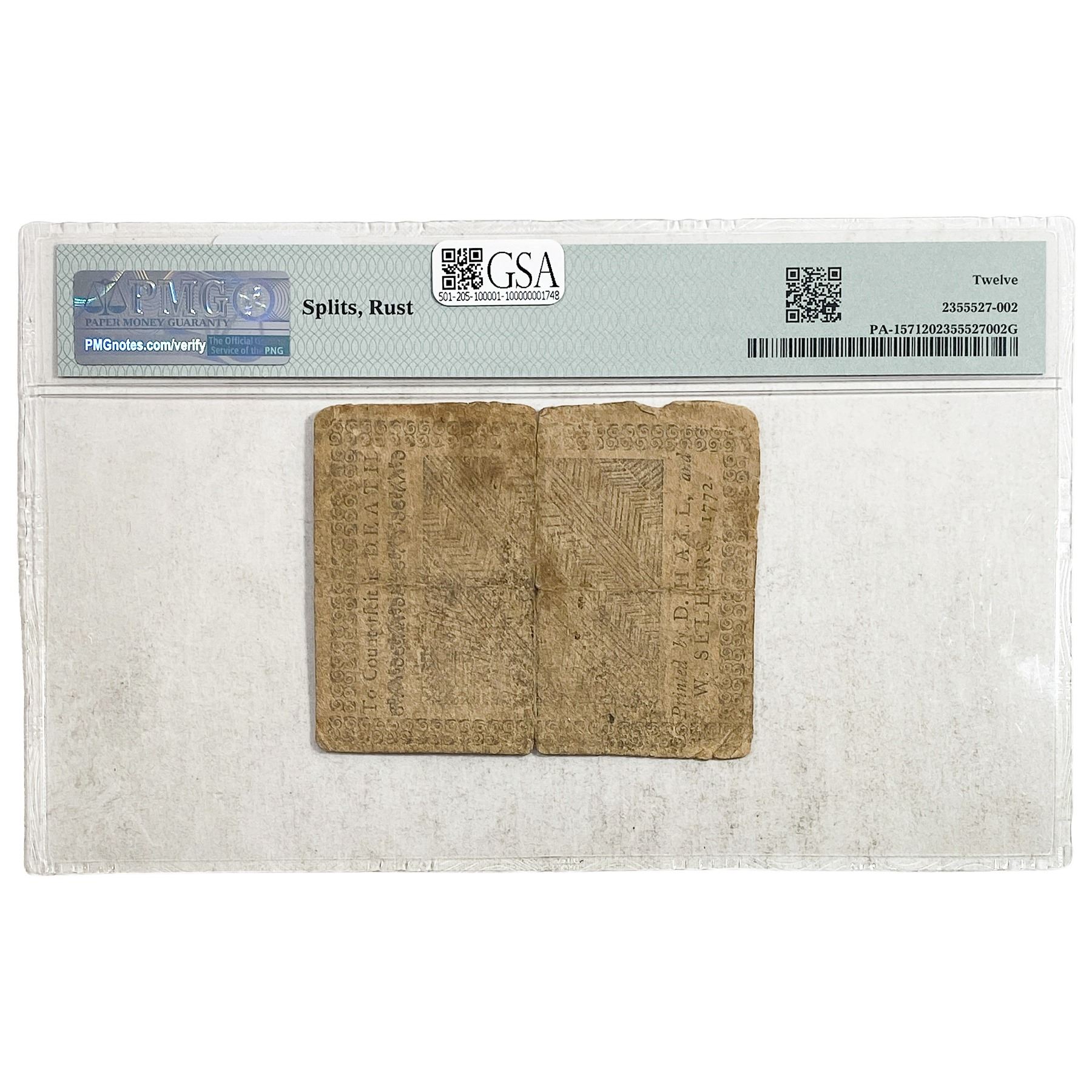 1772 2 Shillings Penn. Colonial Note PMG 12 F