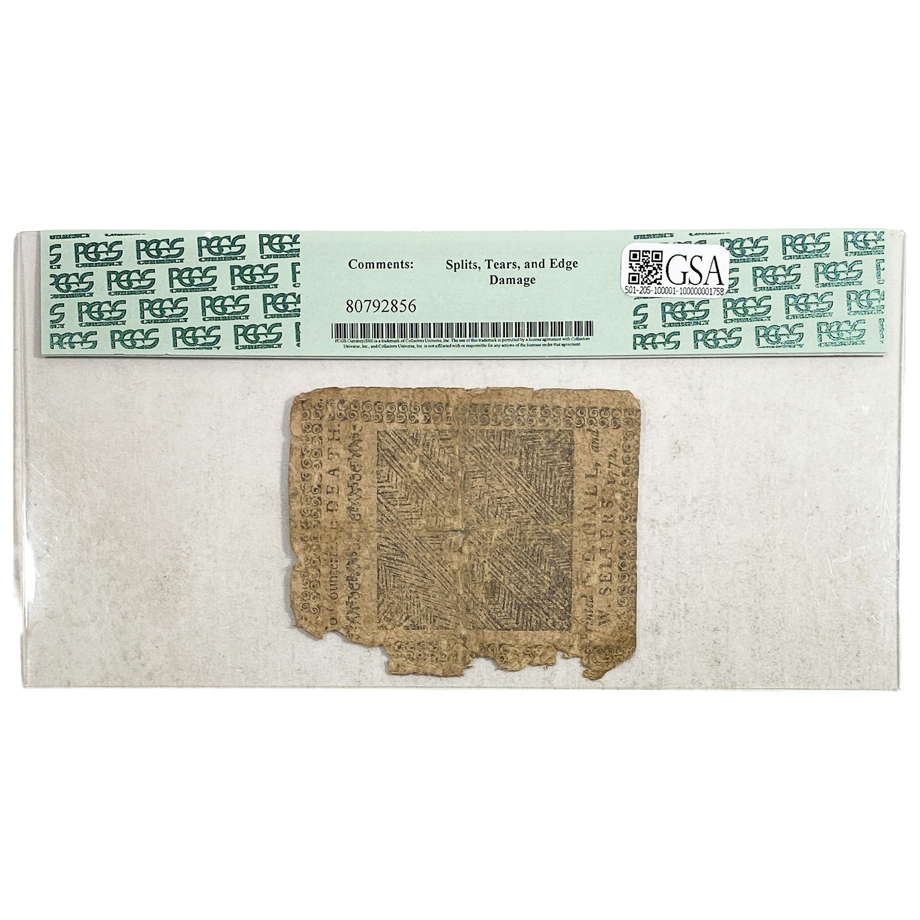 1772 2s/6d Penn. Colonial Currency PCGS 3 About G