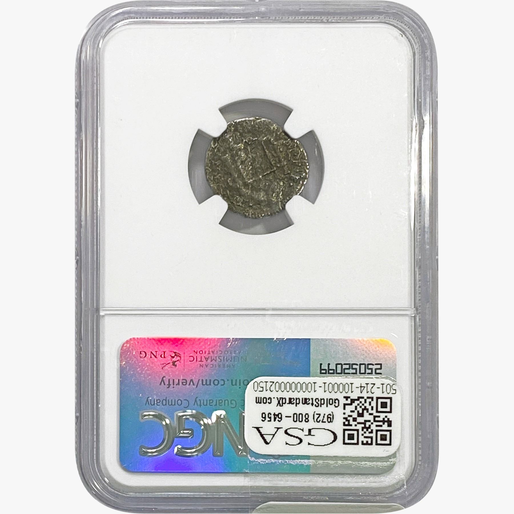 e. Coins sold referencing a third-party grading service are sold “AS IS” without any express or implied warranty, except for a guarantee by GSA that they are genuine. Removal or alteration of the holder, voids all of Bidder’s claims concerning that Product. Certain warranties may be available from the grading services and Bidders are referred to them for further details: Numismatic Guaranty Corporation (NGC), PO Box 4776, Sarasota, FL 34230, www.ngccoin.com/services/writtenguarantee.asp; Professional Coin Grading Services (PCGS), PO Box 9458, Newport Beach, CA 92658, www.pcgs.com/guarantee.html; ANACS, 6555 S. Kenton St., Ste. 303, Englewood, CO 80111; and Independent Coin Grading Co. (ICG), 7901 East Bellview, Ave., Suite 50, Englewood, CO 80111.