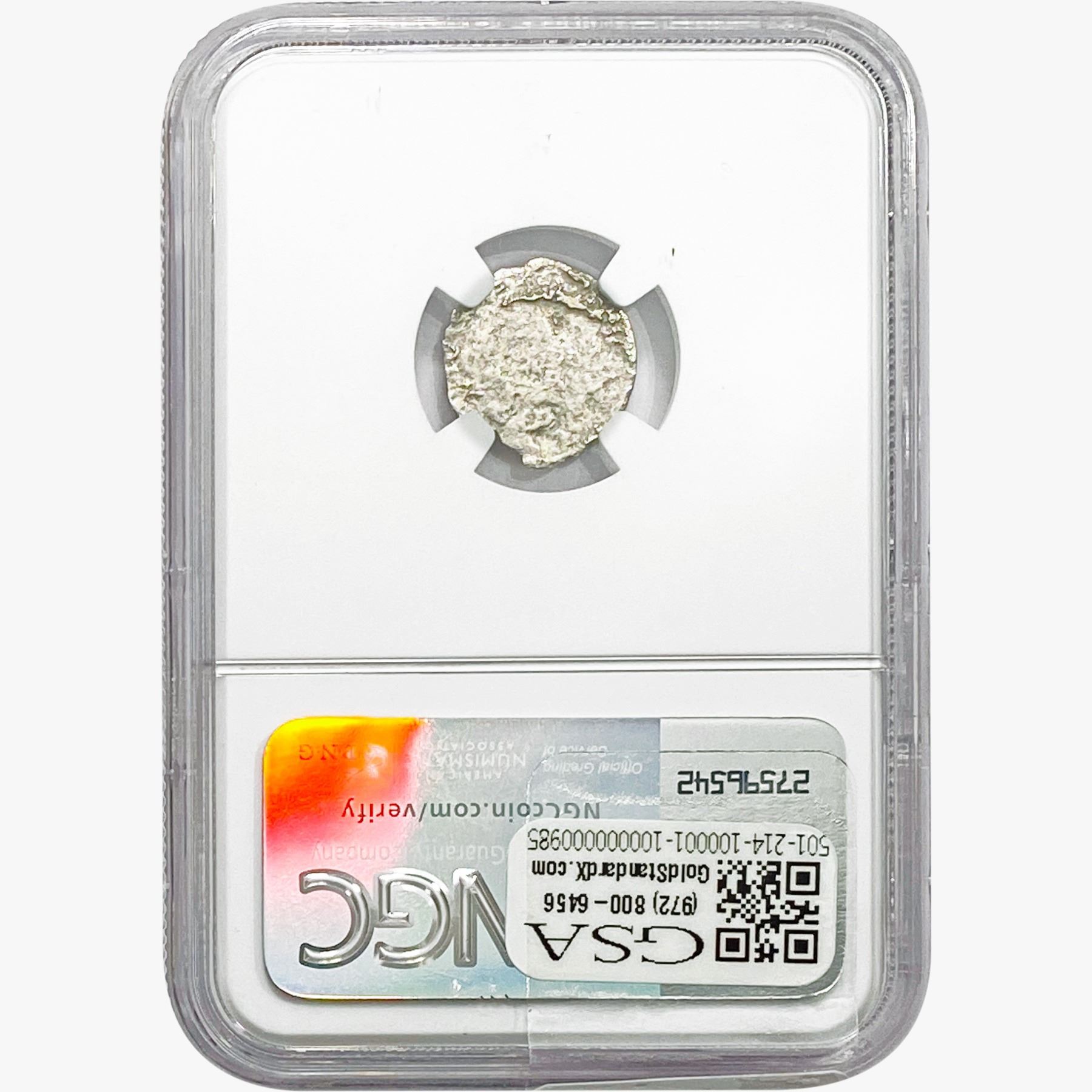 e. Coins sold referencing a third-party grading service are sold “AS IS” without any express or implied warranty, except for a guarantee by GSA that they are genuine. Removal or alteration of the holder, voids all of Bidder’s claims concerning that Product. Certain warranties may be available from the grading services and Bidders are referred to them for further details: Numismatic Guaranty Corporation (NGC), PO Box 4776, Sarasota, FL 34230, www.ngccoin.com/services/writtenguarantee.asp; Professional Coin Grading Services (PCGS), PO Box 9458, Newport Beach, CA 92658, www.pcgs.com/guarantee.html; ANACS, 6555 S. Kenton St., Ste. 303, Englewood, CO 80111; and Independent Coin Grading Co. (ICG), 7901 East Bellview, Ave., Suite 50, Englewood, CO 80111.