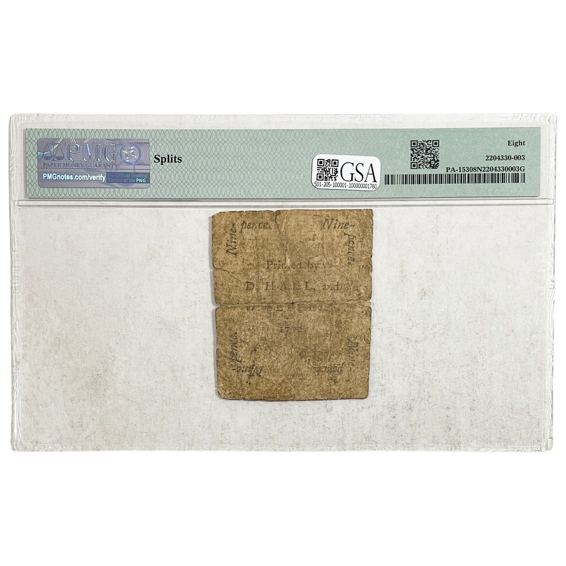 1772 9 Pence Penn. Colonial Note PMG VG 8