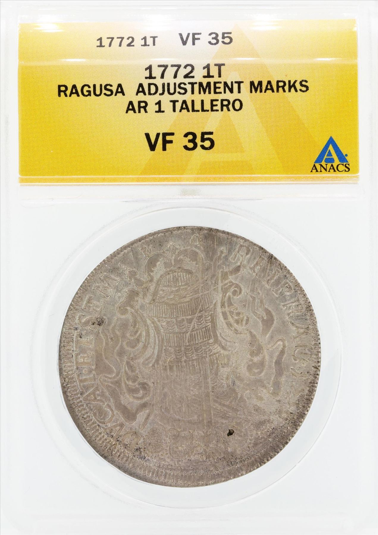 One 1772 Ragusa Adjustment Marks 1 Tallero Coin ANACS VF35.