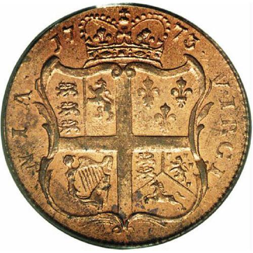 1773 1/2P Virginia Halfpenny, Period MS64 Red PCGS. Ei 1773[1/2P] Virginia Halfpenny, Period MS64 Re