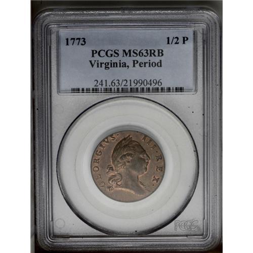 "1773 1/2P Virginia Halfpenny, Period MS"