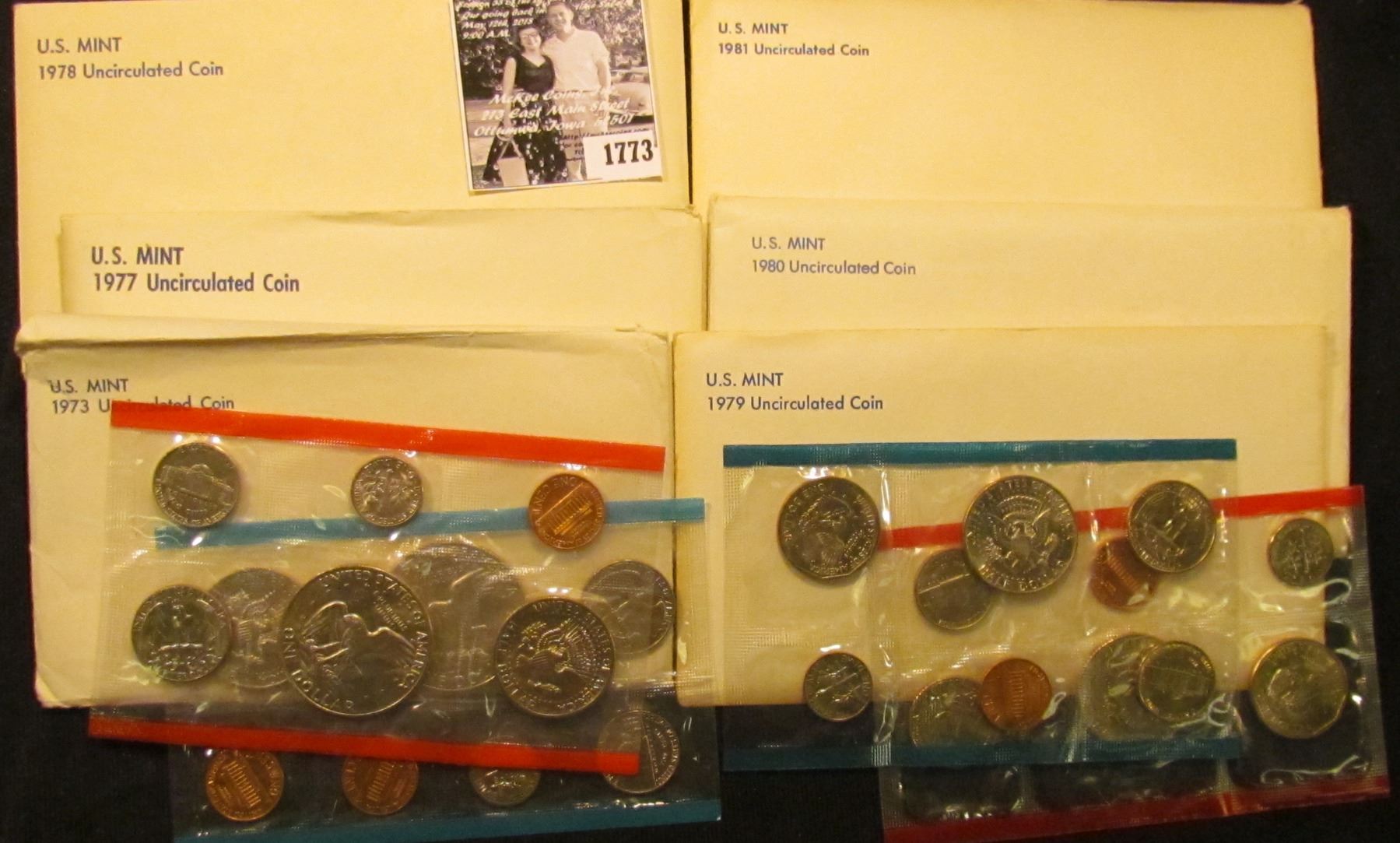 1773 . 1973, 77, 78, 79, 80, & 81 U.S. Mint Sets. All original as issued. (total face value $24.93)