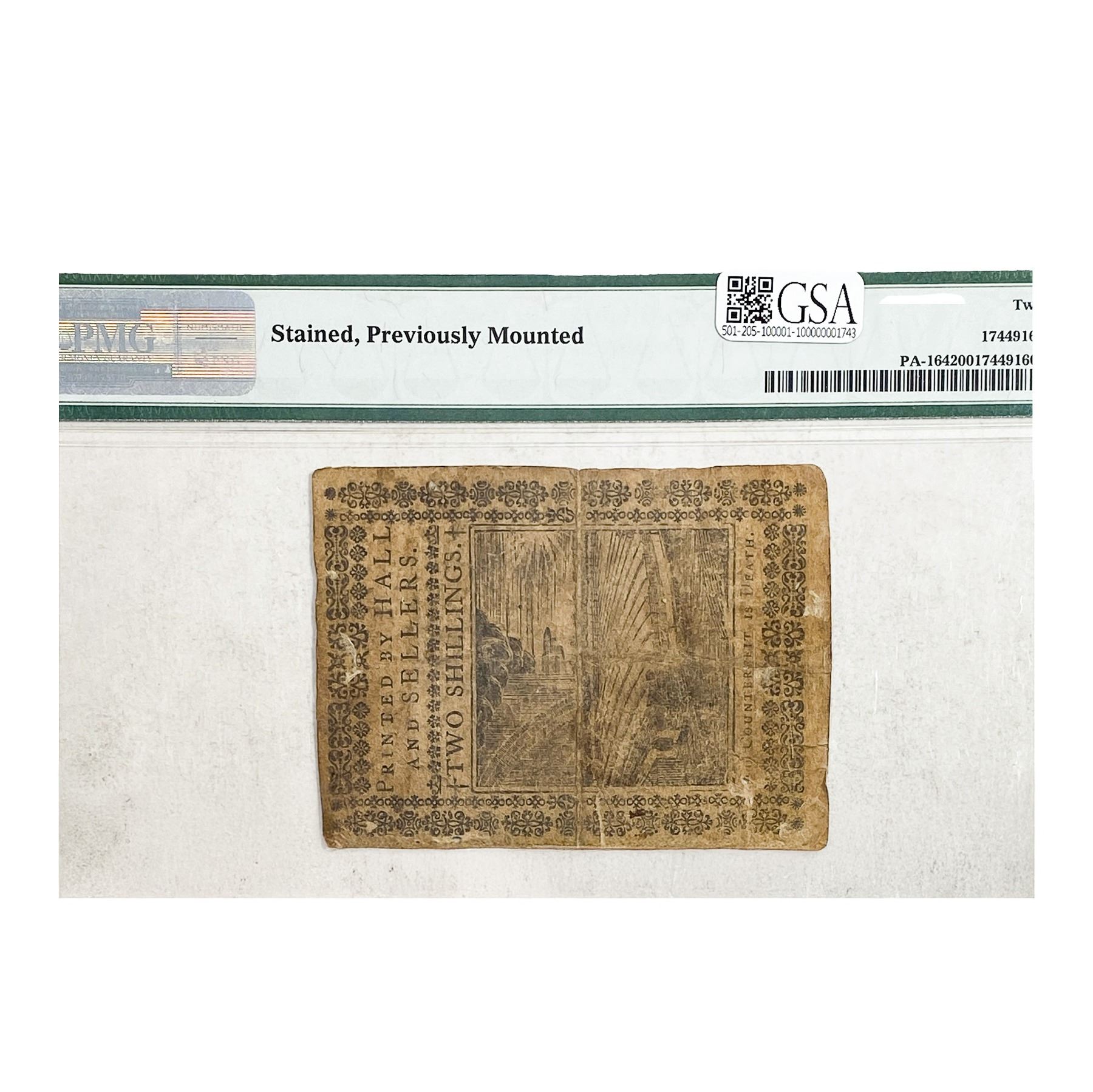 1773 2 Shillings Penn. Colonial Note PMG 20 VF