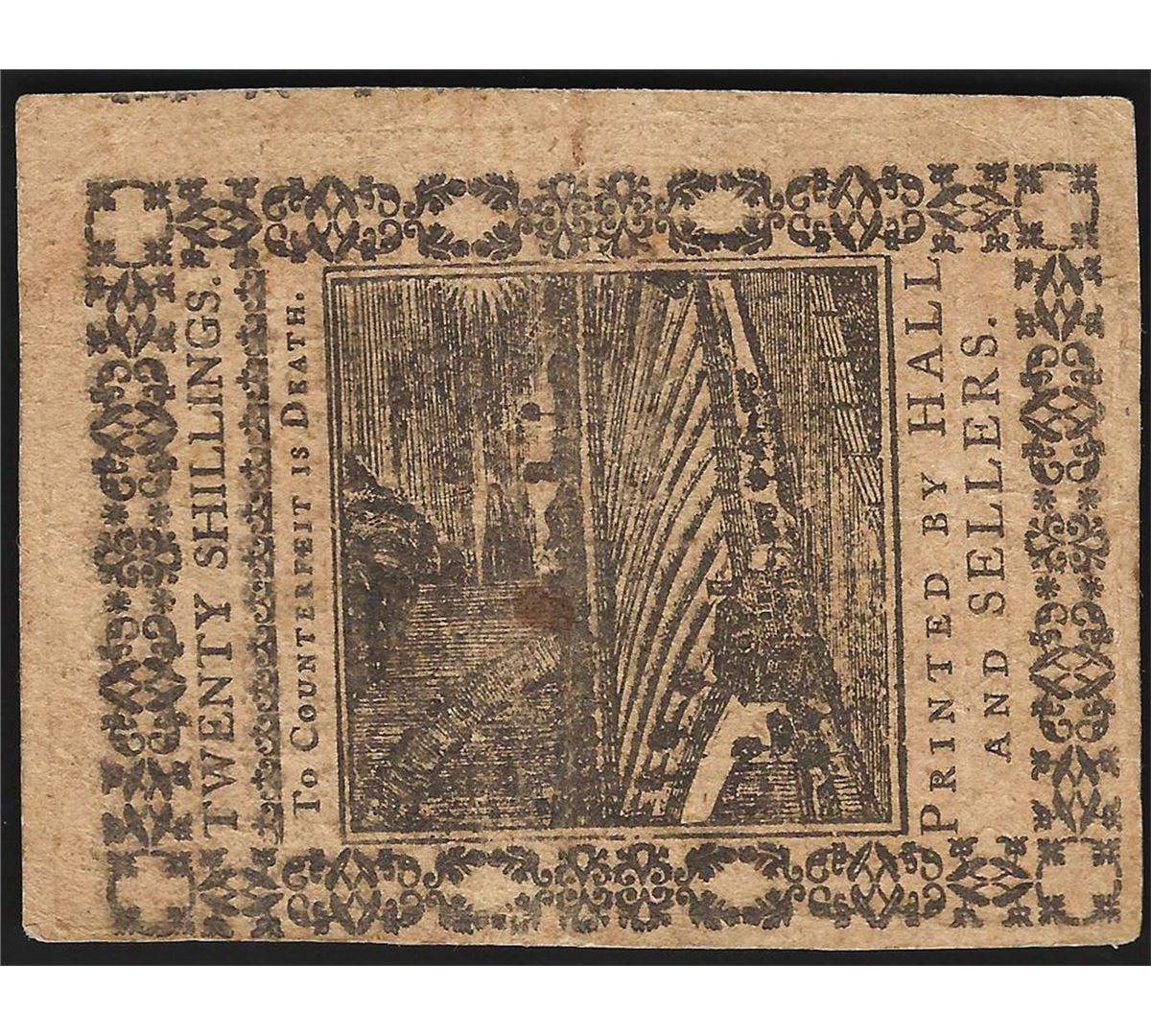 1773 Twenty Shillings Pennsylvania Colonial Continental Currency Note