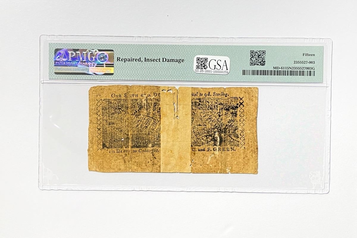 1774 $1/6 Maryland Colonial Note PMG 15 NET