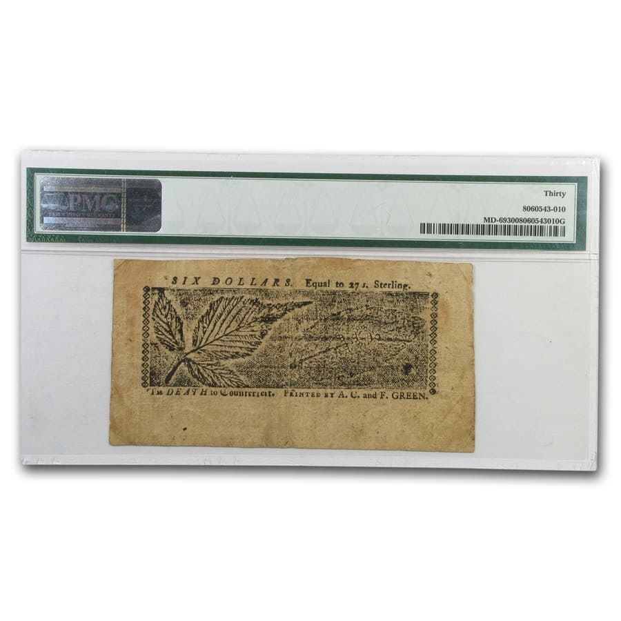 1774 $6 Maryland Currency 4/10/1774 VF-30 PMG