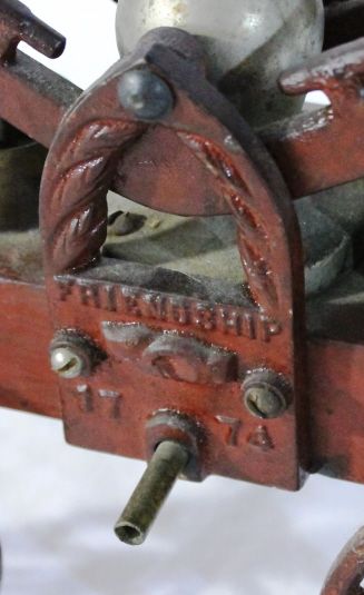 15" long x 8 1/4" tall.  All cast iron, appears to  be a real working model.  Possibly a salesman  sample, or a display model.