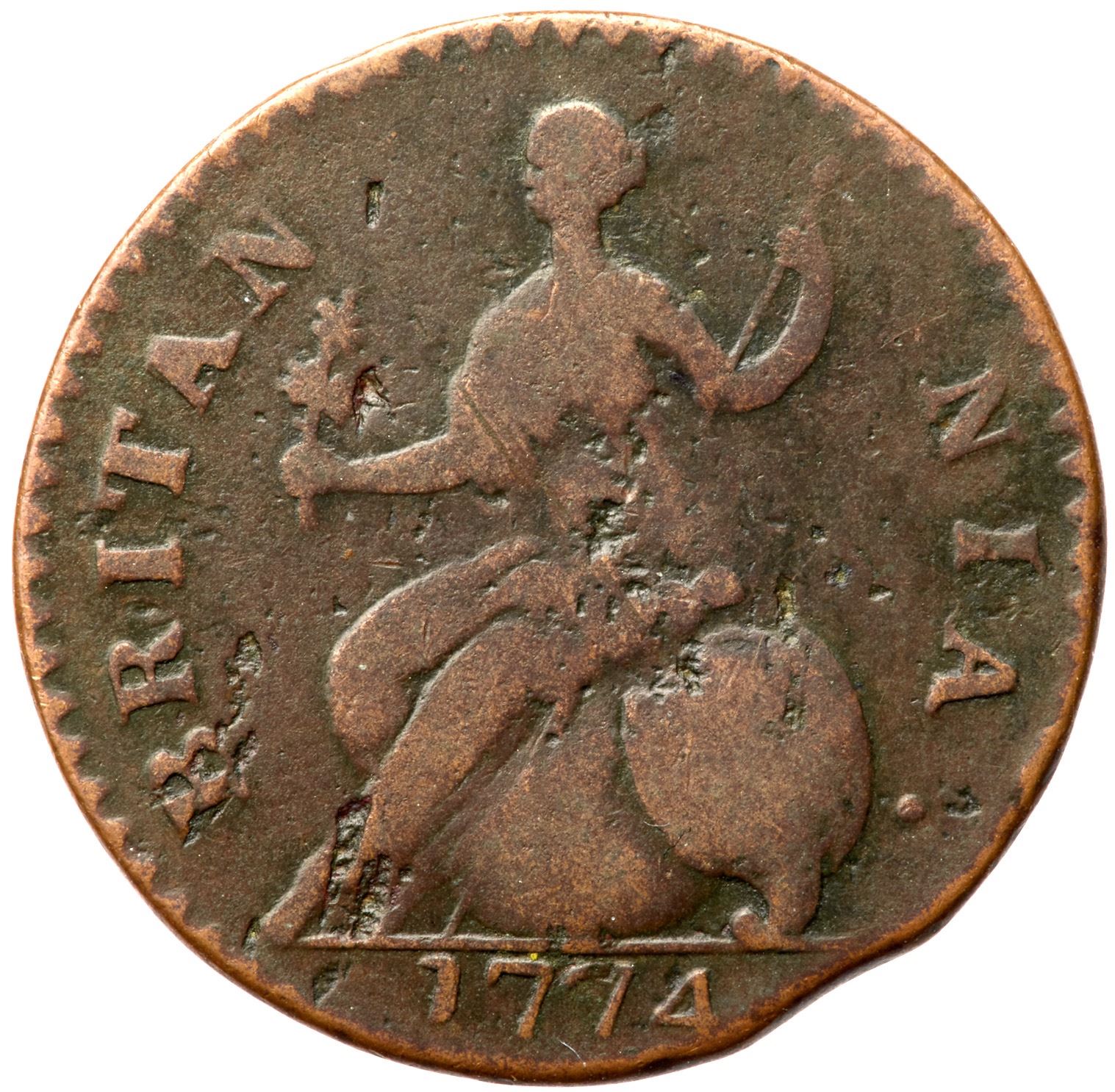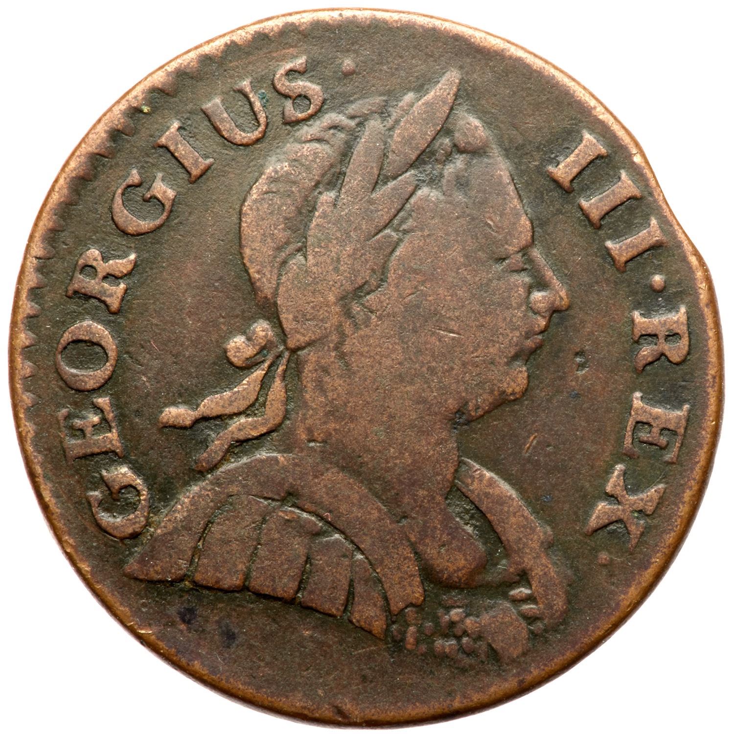 Attractive glossy medium brown blending to medium chocolate brown in the fields and protected areas. The planchet is smooth and free of any notable contact marks, but there are a half dozen small voids on the reverse, mostly at the waist of the seated figure (as struck). A small, curved planchet clip just right of the date does not affect any of the design elements. Nicely centered on the planchet. The date and legends are complete and strong. A very nice example of this very rare variety, and the GEORGIUS error is bold. The obverse is superior to the Vlack plate coin. Weight 141.6 grains.