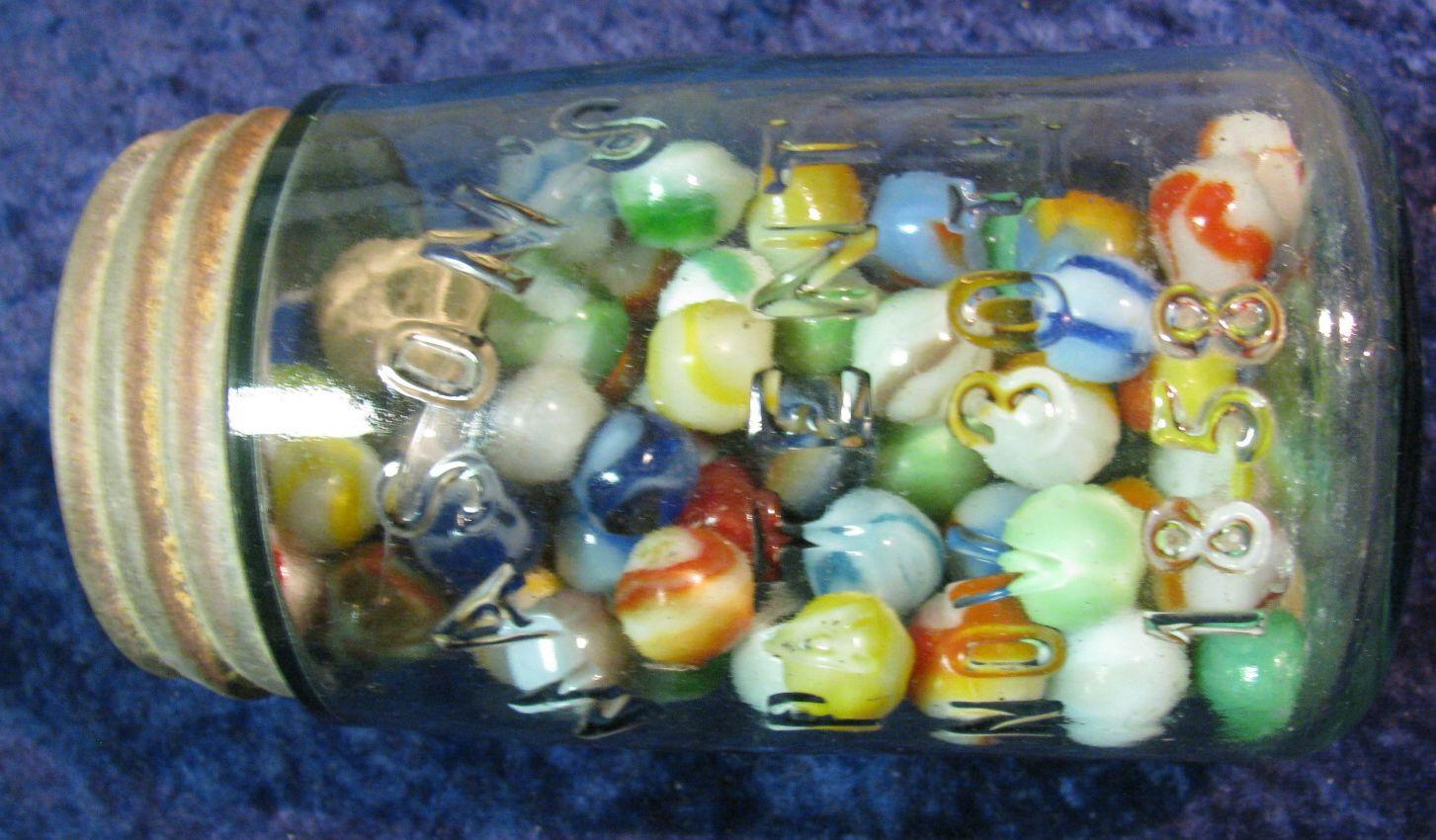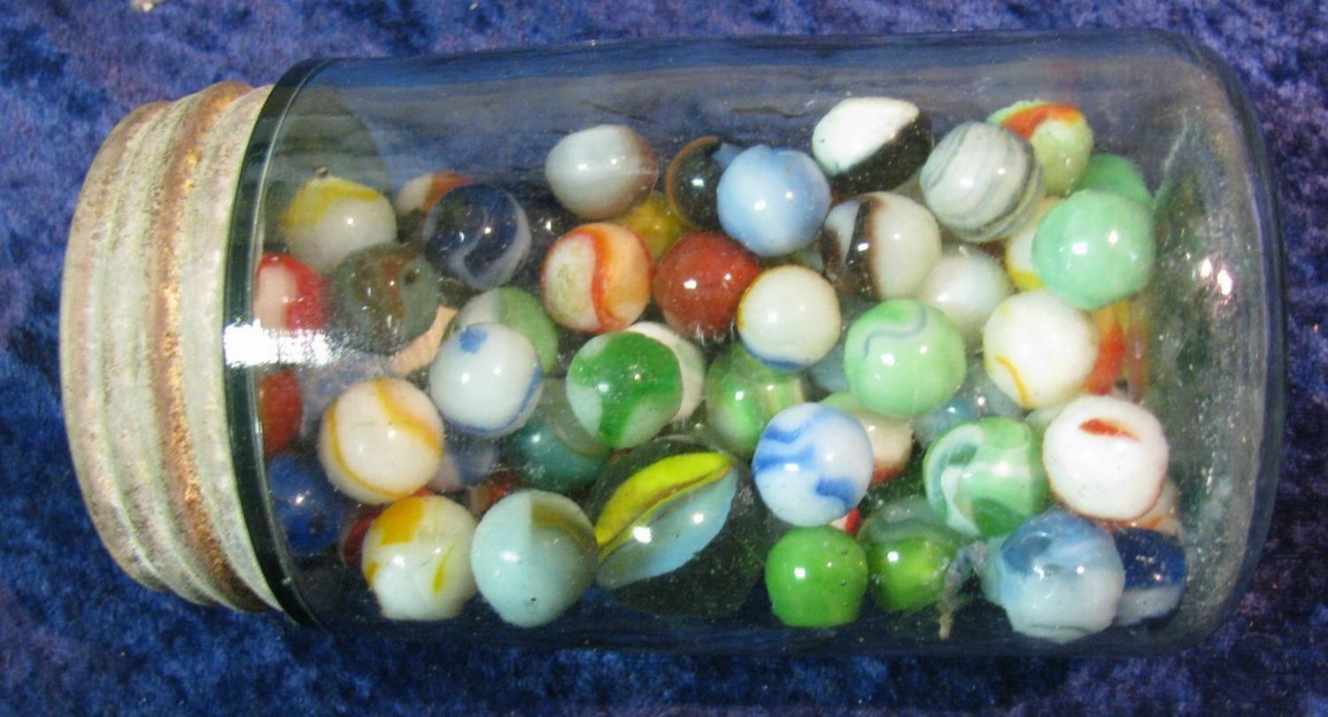 1774. Mason's Patent Nov. 30th 1858 Jar with marbles.