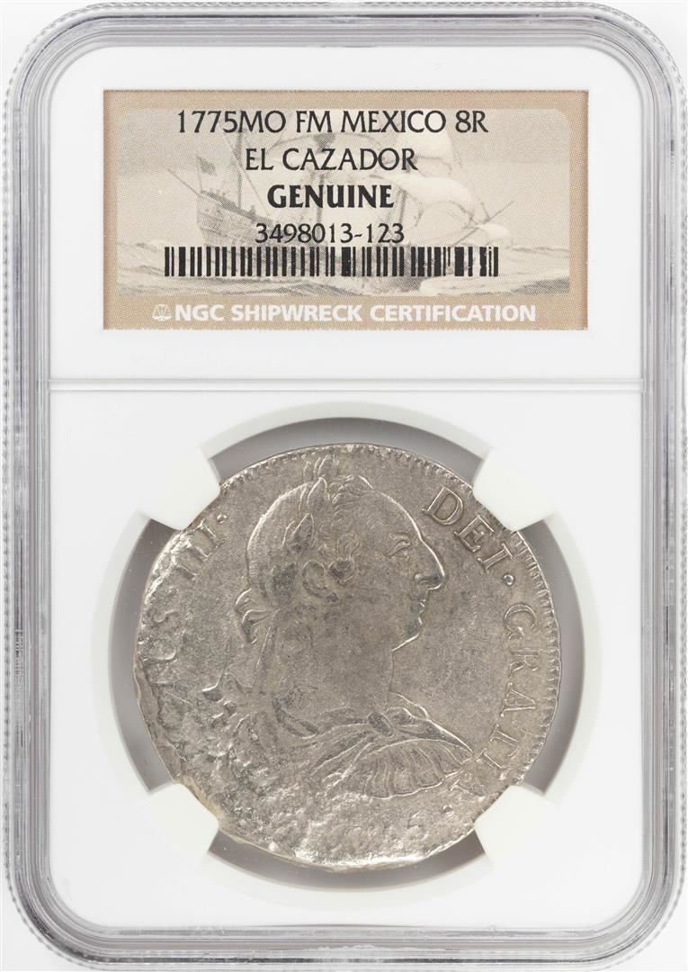 One 1775MO FF Mexico 8 Reales El Cazador Shipwreck Coin NGC Genuine. NGC Certified.