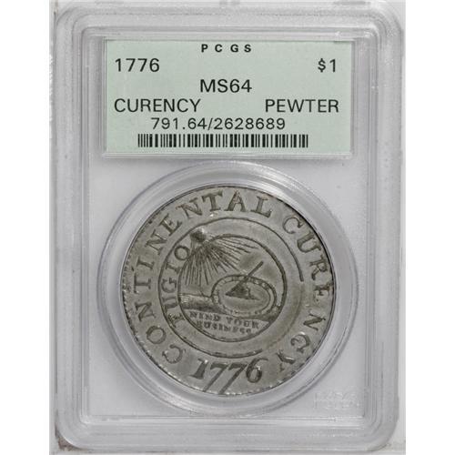1776 $1 Continental Dollar, CURENCY, Pewter MS64 PCGS.