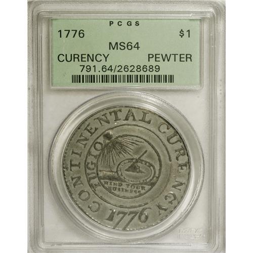 1776 $1 Continental Dollar, CURENCY, Pewter MS64 PCGS.