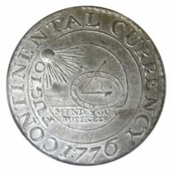 <TABLE cellSpacing=0 cellPadding=0 width="100%" bgColor=#000000 border=0><TBODY><TR><TD width="100%"><TABLE cellSpacing=1 cellPadding=3 width="100%" border=0><TBODY><TR><TD width="100%" bgColor=#79735c><FONT face=arial color=#ffffff size=3><B>Description</B> </FONT></TD></TR><TR><TD width="100%" bgColor=#ffffff><FONT face=arial size=2><B>1776 $1 Continental Dollar, CURRENCY, Pewter AU58 PCGS.</B></I> Newman-2C. 38.3 mm. 268.98 grains (17.43 grams). Actually struck in tin, but the popular notion that these coins are made of pewter will not die. Breen notes that "specimens are mostly dull," but this coin is highlighted by substantial portions of mint luster and much of the original brightness remains. The surfaces are medium gray in color and the devices are sharply defined throughout. Continental dollars are popular and enigmatic coins that are now believed to be patterns authorized by the Continental Congress. Listed on page 33 of the 2003 <I>Guide Book.</B></I><BR><I>From the Wesley Van Olden Collection of Colonial Coinage.</B></I> </FONT></TD></TR></TBODY></TABLE></TD></TR></TBODY></TABLE><BR><A name=PricesRealized></A><TABLE cellSpacing=0 cellPadding=0 width="100%" bgColor=#000000 border=0><TBODY><TR><TD width="100%"><TABLE cellSpacing=1 cellPadding=3 width="100%" border=0><TBODY><TR><TD width="100%" bgColor=#79735c><A name=PR><FONT face=arial color=#ffffff size=3><B>Previous Prices from Heritage Auctions</B> </FONT></A></TD></TR><TR><TD bgColor=#f6f6ed>No Prior Data Recorded </TD></TR><TR><TD bgColor=#ffffff><FONT face=arial size=1 ?>PLEASE NOTE: All prices realized reflect the final hammer price PLUS the buyer's premium in auctions that charge a buyer's premium. Each item has a notation at the top of the listing indicating whether that lot included a buyer's premium. Example: A item that sells with a final hammer price of $100 and a 20% buyer's premium will display with a price realized of $120. All information listed is intended to be as accurate as possible, but errors are possible. Please use this guide carefully and inform us of any inaccuracies. </FONT></TD></TR></TBODY></TABLE></TD></TR></TBODY></TABLE><BR><TABLE cellSpacing=0 cellPadding=0 width="100%" bgColor=#000000 border=0><TBODY><TR><TD width="100%"><TABLE cellSpacing=1 cellPadding=3 width="100%" border=0><TBODY><TR><TD width="100%" bgColor=#79735c colSpan=6><FONT face=arial color=#ffffff size=3><B>Price Guide*</B> </FONT></TD></TR><TR bgColor=#f6f6ed><TD align=middle><B>Grade</B> </TD><TD align=middle><B>Coin World<BR>(Trends)</B> </TD><TD align=middle><B>Numismedia<BR>Retail</B> </TD><TD align=middle><B>Numismedia<BR>Wholesale</B> </TD><TD align=middle><B>Coin<BR>Universe</B> </TD><TD align=middle><B>Heritage<BR>Value Index</B> </TD></TR><TR bgColor=#ffffff><TD align=middle>55</TD><TD align=right>---</TD><TD align=right>---</TD><TD align=right>---</TD><TD align=right>---</TD><TD align=right>---</TD></TR><TR style="FONT-WEIGHT: bold" bgColor=#cccfdd><TD align=middle>58</TD><TD align=right>---</TD><TD align=right>---</TD><TD align=right>---</TD><TD align=right>---</TD><TD align=right>---</TD></TR><TR bgColor=#ffffff><TD align=middle>60</TD><TD align=right>---</TD><TD align=right>---</TD><TD align=right>---</TD><TD align=right>---</TD><TD align=right>---</TD></TR><TR bgColor=#ffffff><TD colSpan=6><FONT size=1>*All information listed is intended to be as accurate as possible, but errors are possible. No item may be returned or refused based on this information which is provided as a service to our customers. You should contact each pricing source directly to determine the accuracy of this information. </FONT></TD></TR></TBODY></TABLE></TD></TR></TBODY></TABLE><BR><TABLE cellSpacing=0 cellPadding=0 width="100%" bgColor=#000000 border=0><TBODY><TR><TD width="100%"><TABLE cellSpacing=1 cellPadding=3 width="100%" border=0><TBODY><TR><TD width="100%" bgColor=#79735c><FONT face=arial color=#ffffff size=3><B>Population Guide</B> </FONT></TD></TR><TR bgColor=#ffffff><TD align=middle><!-- Begin Output of Population Grid--><TABLE cellSpacing=0 cellPadding=0 width="100%" border=0><TBODY><TR><TD vAlign=center><TABLE cellSpacing=0 width="100%" border=1 cellsadding="3"><TBODY><TR><TD vAlign=center><TABLE cellSpacing=0 cellPadding=3 width="100%" border=1><TBODY><TR><TD vAlign=center align=middle bgColor=#f0f1e8 colSpan=2 <CENTER><FONT face=Arial size=2><B>PCGS Pop </B></FONT><CENTER></CENTER></TD><TD vAlign=center align=middle bgColor=#f0f1e8 colSpan=2><CENTER><FONT face=Arial size=2><B>NGC Pop</B></CENTER></FONT></TD></TR><TR><TD vAlign=center><FONT face=Arial size=2>(58)</FONT> </TD><TD vAlign=center align=right><FONT face=Arial size=2>9</FONT> </TD><TD vAlign=center><FONT face=Arial size=2>(58)</FONT> </TD><TD vAlign=center align=right><FONT face=Arial size=2>0</FONT> </TD></TR><TR><TD vAlign=center><FONT face=Arial size=2>(>58)</FONT> </TD><TD vAlign=center align=right><FONT face=Arial size=2>13</FONT> </TD><TD vAlign=center><FONT face=Arial size=2>(>58)</FONT> </TD><TD vAlign=center align=right><FONT face=Arial size=2>0</FONT> </TD></TR></TBODY></TABLE></TD></TR></TBODY></TABLE></TD></TR></TBODY></TABLE><!-- End Output of Population Grid--> Important notice: Heritage usually auctions material at the rate of 200-250 lots per hour. On some occasions eBay Live bid software or the Internet may not be able to keep up with the pace of the auction. We recommend placing a realistic absentee bid now as insurance to avoid disappointment. Occasionally the auctioneer may eliminate or reject an eBay Live bid, and the auctioneer may also reopen a lot after the close of the eBay live bidding (usually because we missed an audience bid), and may reject your bid even if it shows you as the winning bidder. By bidding via eBay Live, you agree that Heritage may award the lot to another bidder at its sole discretion under the circumstances described above or any other reasonable circumstances. Also please note that all Heritage lots purchased through eBa