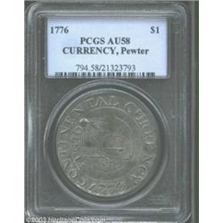 1776 $1 Continental Dollar, CURRENCY, Pewter AU58 PCGS.