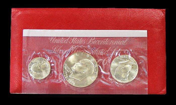 Minted to celebrate the Bicentennial, this special set includes the 40% Silver Uncirculated Ike Dollar, the 40% Silver Uncirculated Kennedy Half Dollar and the 40% Silver Uncirculated Washington Quarter. Melt on this set is over $12.50 alone!! Estimated Value $25