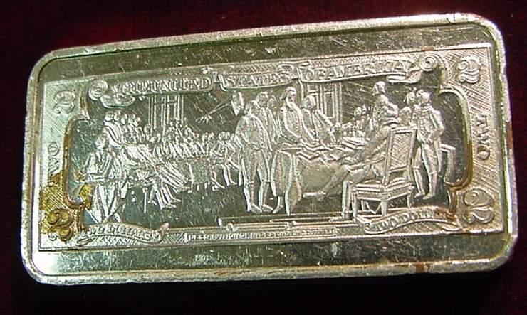1776 Declaration of Independence Silver Bar produced by the American Royal Mint and guaranteed to contain 15 grains .999 Fine Silver. Limited Edition Proof.