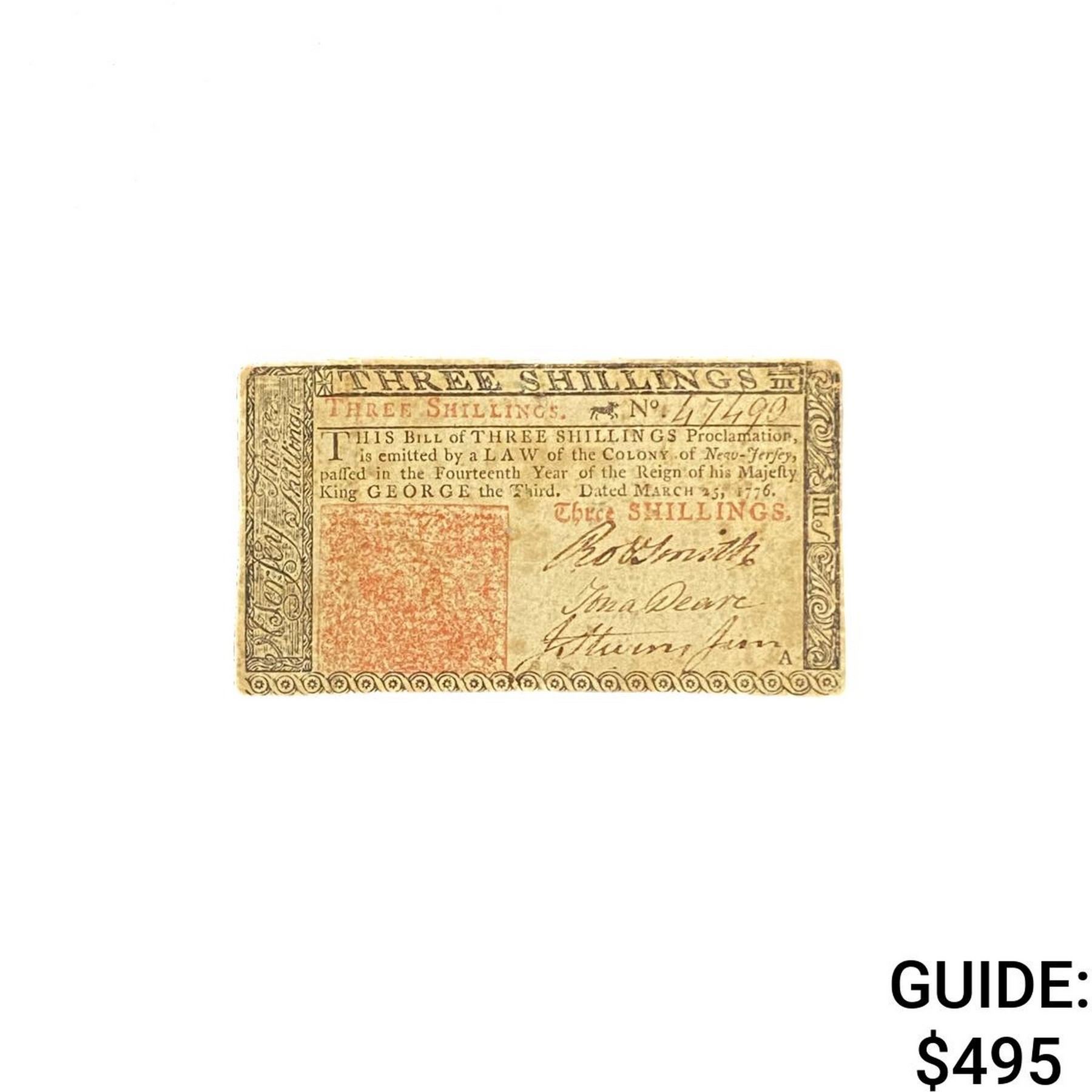 1776 New Jersey Note, March 25th 3 Shillings 7