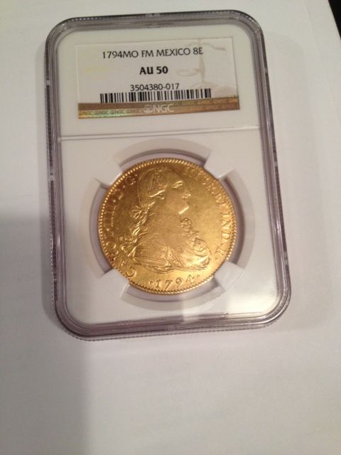 1794MO Spanish Mexico Gold 8 Escudo Large Coin NGC AU-50