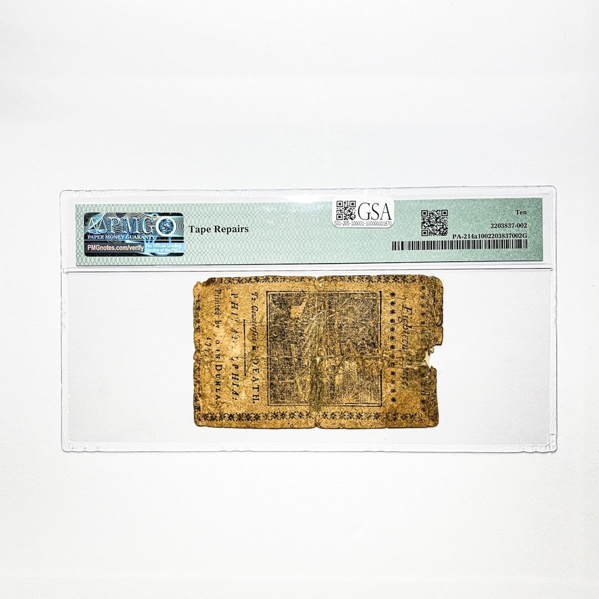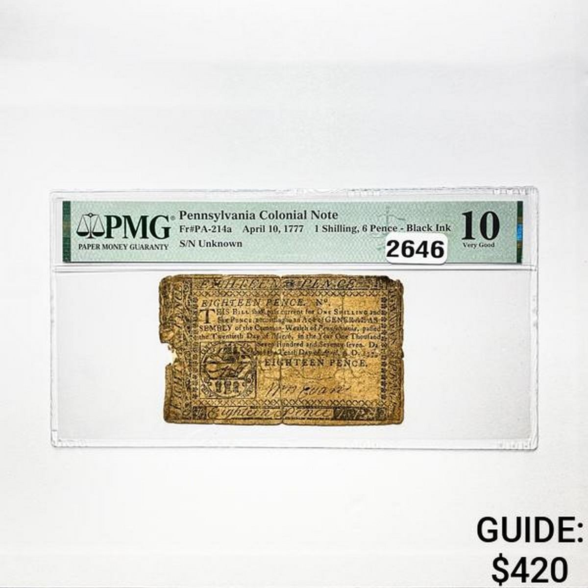 1777 1S, 6P Pennsylvania Colonial Note PMG 10 VG