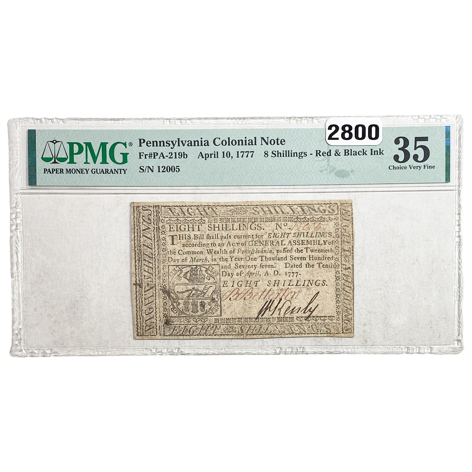 1777 8 Shillings Penn. Colonial Note PMG 35 FV