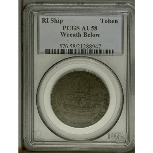 1778-1779 TOKEN Rhode Island Ship Token, Wreath Below,