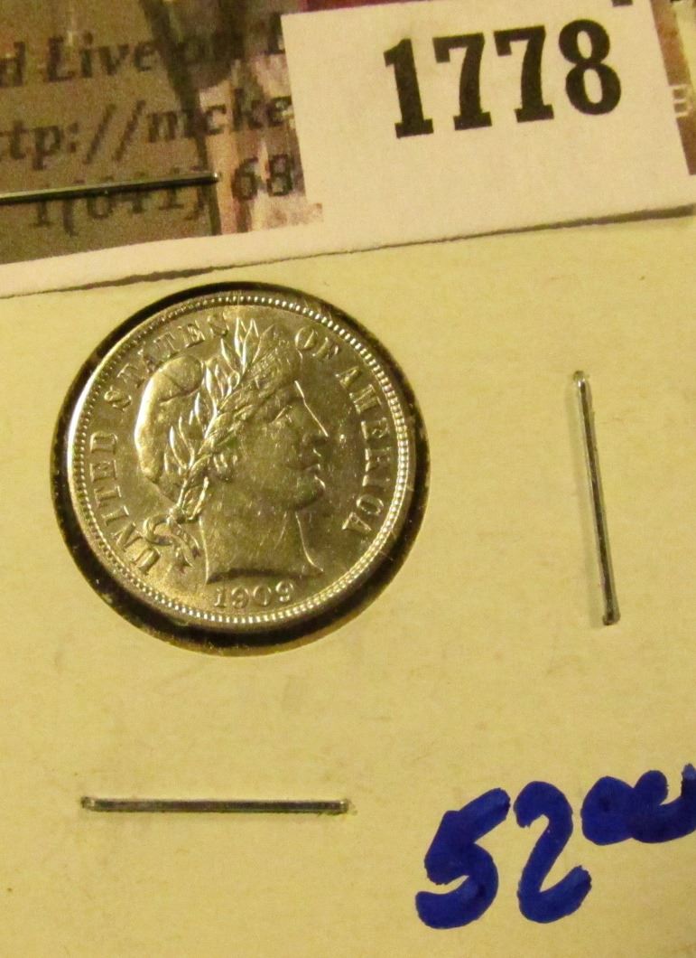 1909 Barber Dime With Full Rims With Cartwheels Visible and Full Liberty