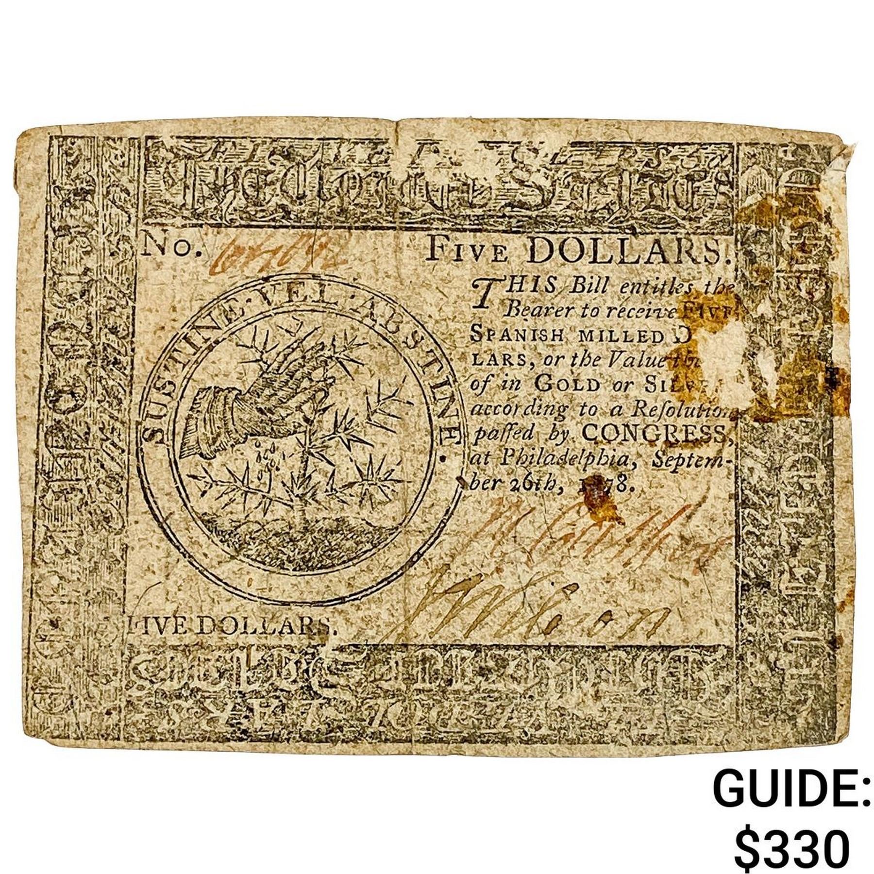 1778 $5 Continental Currency 4