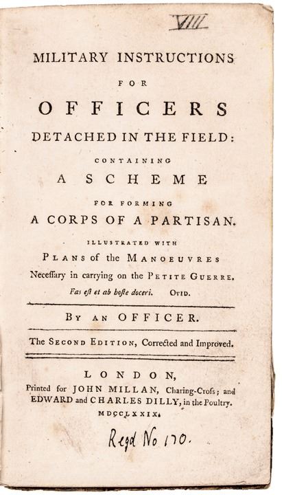 1779, 2nd Ed. Book: Military Instructions for Officers Detached in the Field.