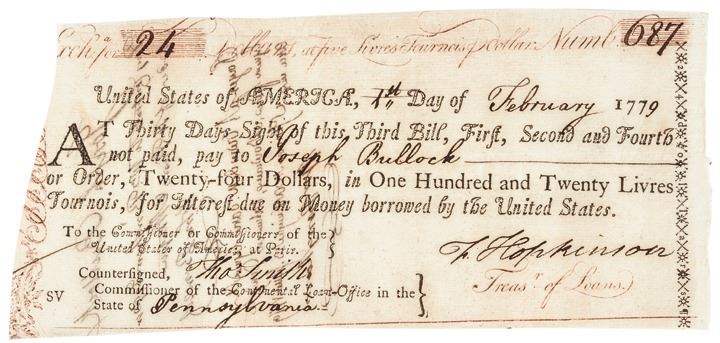 1779 Declaration Signer FRANCIS HOPKINSON Document 3rd US Bill of Exchange Paris