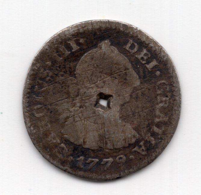 Lower grade, holed/damaged.