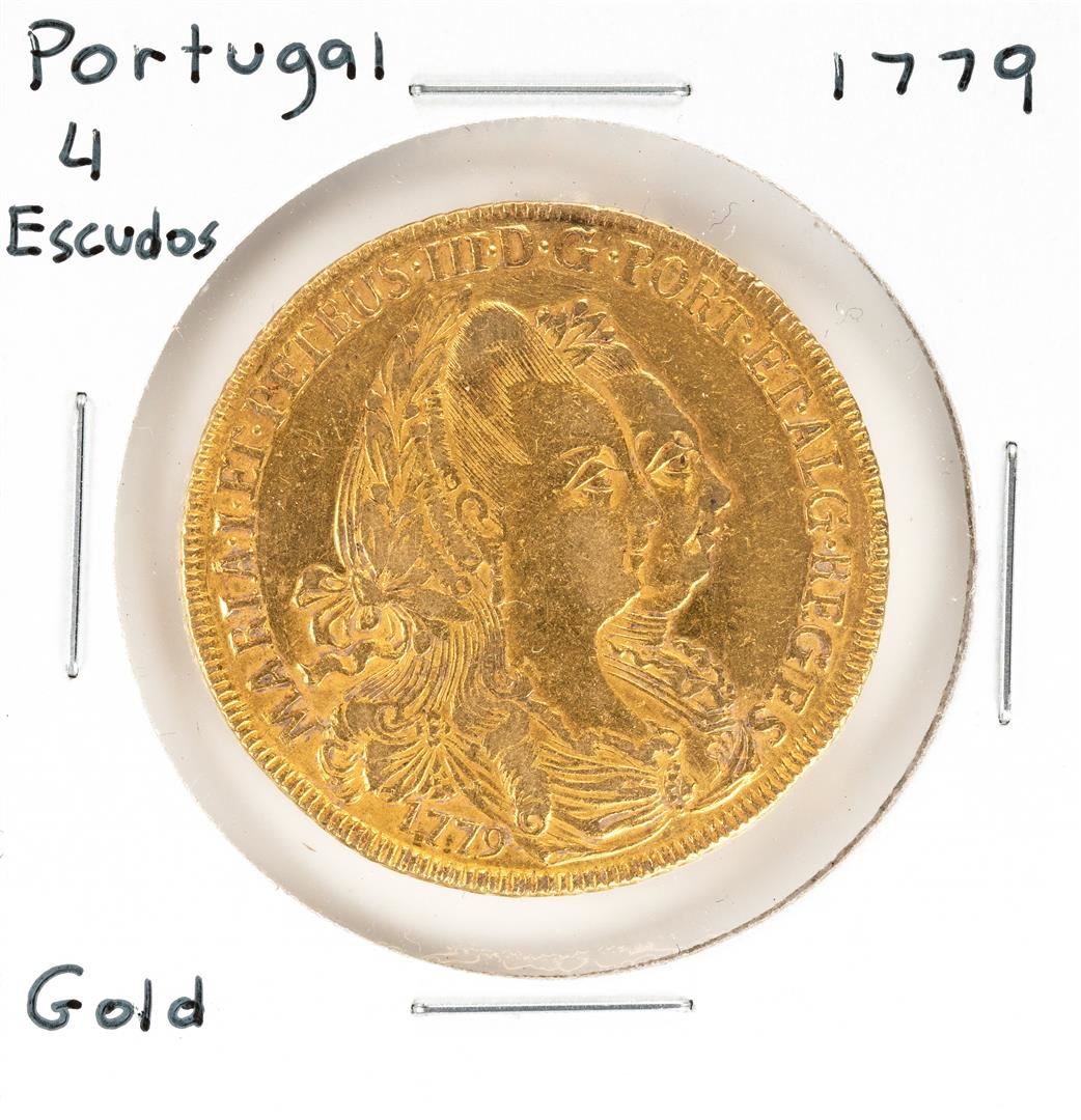 One 1779 Portugal 4 Escudos Gold Coin.