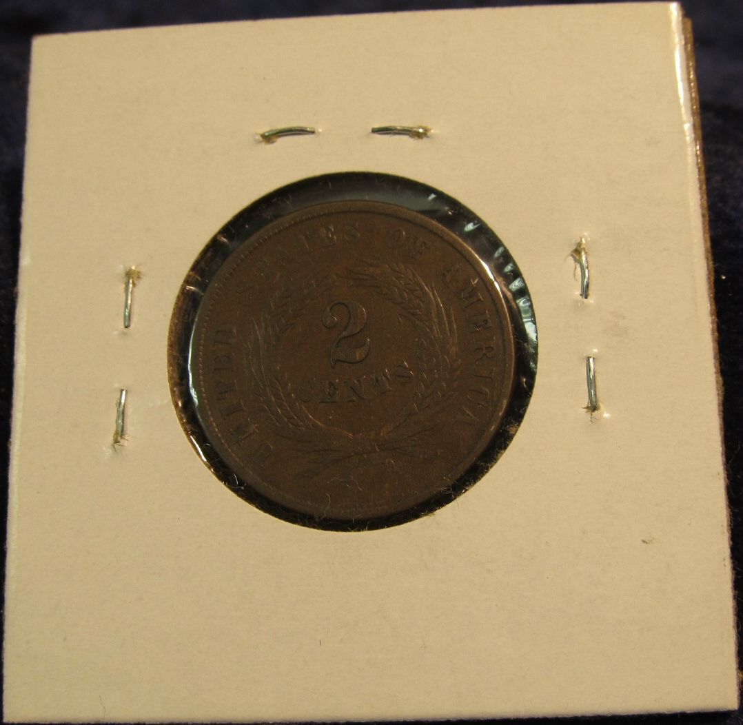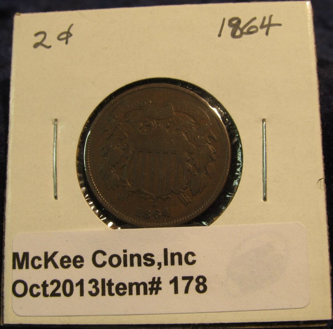 178. 1864 Large Motto U.S. Two Cent. VG-8. Redbook value $19+.