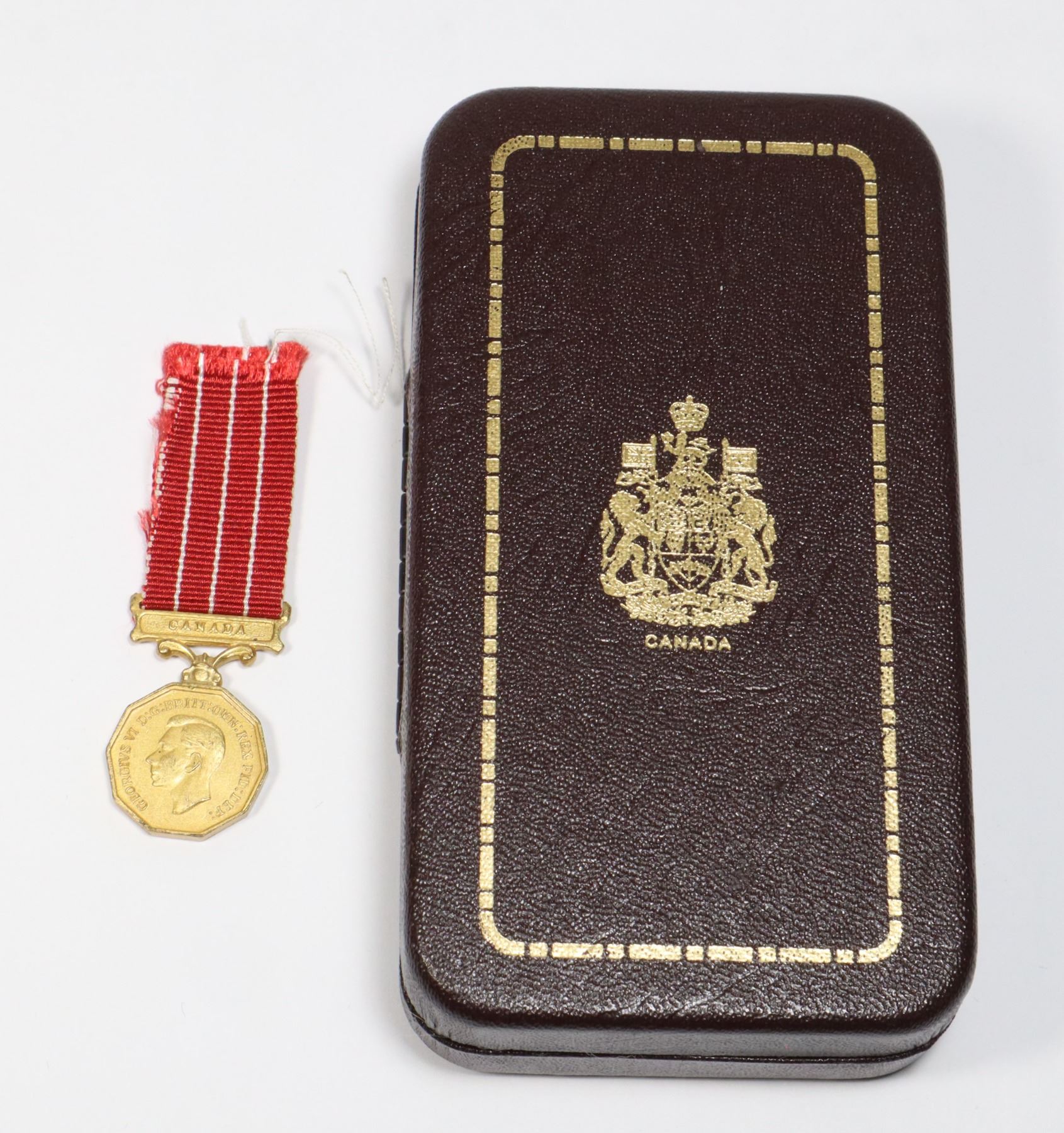 CANADIAN FORCES DECORATION CD MEDAL QEII CASE BOX W/ GEORGE VI MINI MEDAL