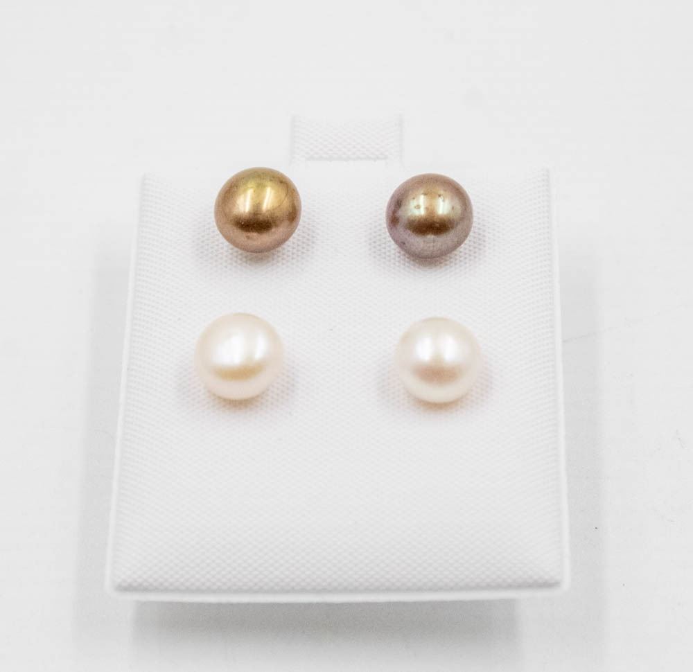 #178-NATURAL AKOYA PEARL STUD EARRINGS 2 PAIRS