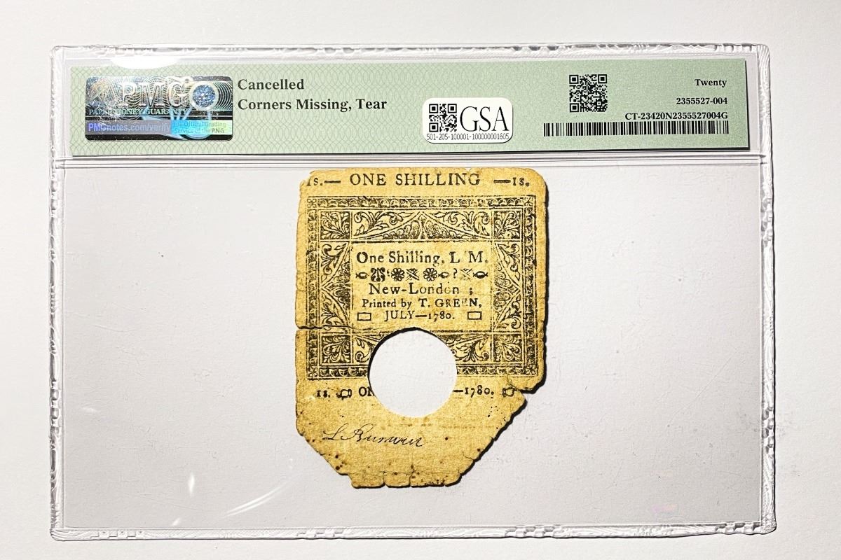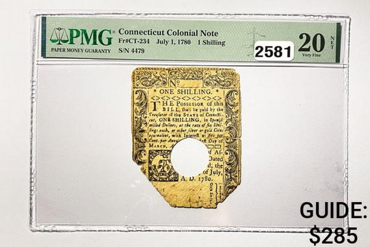 1780 1 Shilling CT Colonial Note PMG VF 20